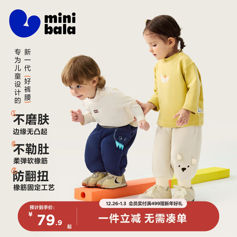 【蹦蹦裤】迷你巴拉巴拉男女童裤子2025冬新品保暖双面绒儿童长裤