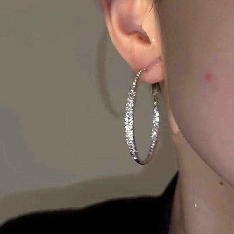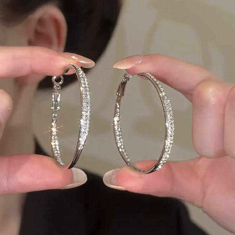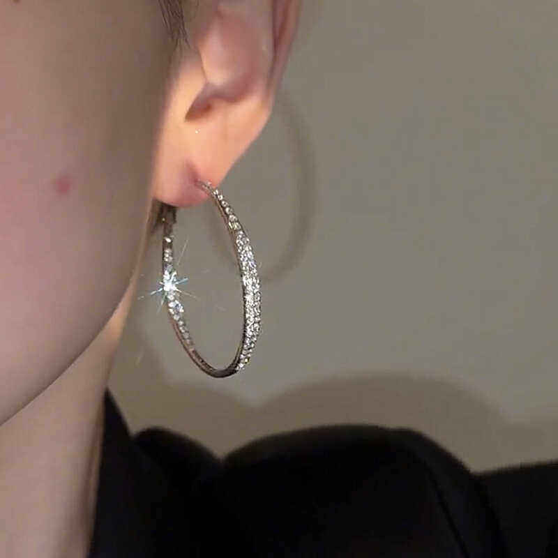 欧美风时尚爆款闪钻大耳圈气质圈圈耳环女高级感夸张银针耳饰