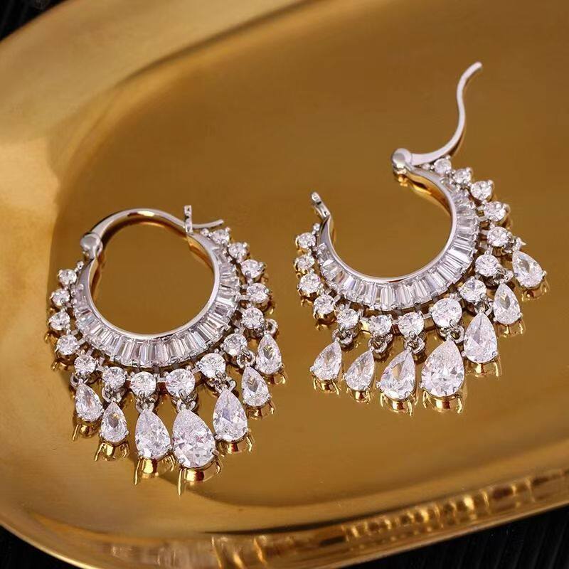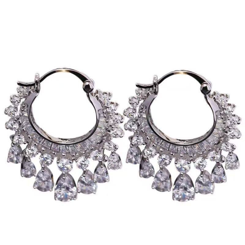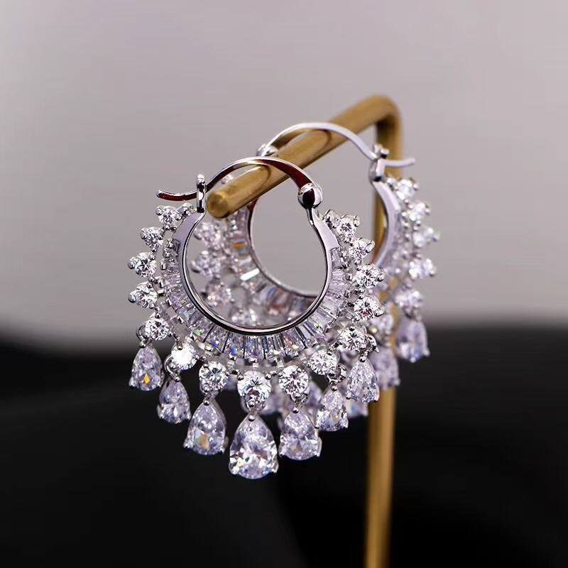欧美奢华大气闪亮圆圈流苏锆石耳环百搭气质仙女耳坠时尚简约耳饰
