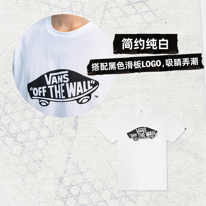 Vans范斯官方 男女情侣短袖T恤夏季滑板LOGO经典款白黑出游好物