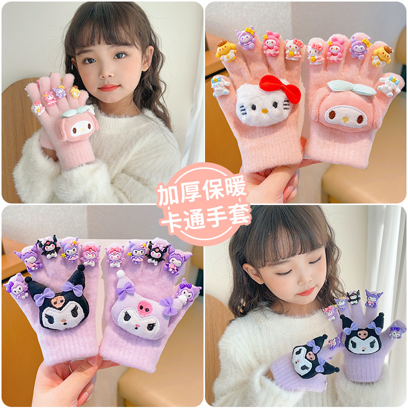 儿童2025手套冬季保暖男女童美甲DIY宝宝加厚五指女连指美乐蒂