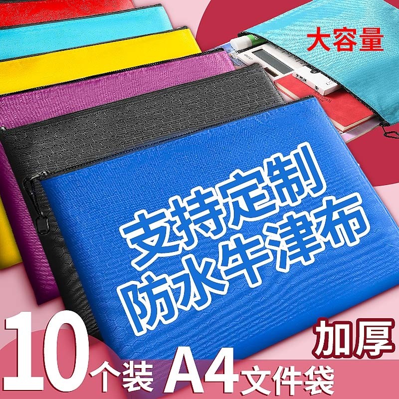 a4文件袋拉链式档案袋足球纹牛津布手提包双层大容量防水小学生收纳分类文具袋可印logo公文包资料袋