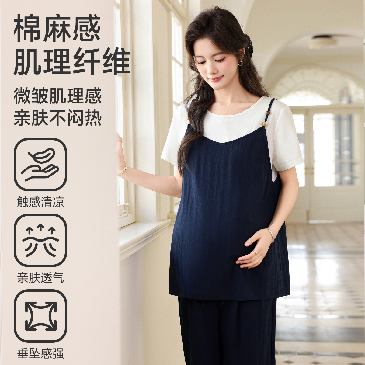 婧麒孕妇装春新款高级感宽松遮肚潮妈孕期穿搭套装女休闲孕妇套装