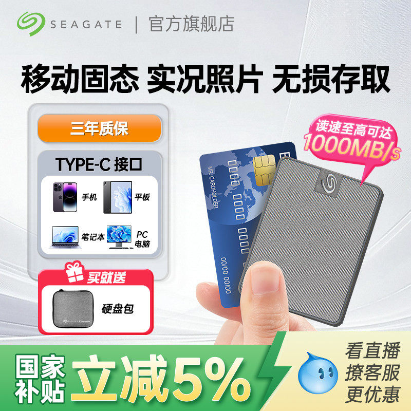 Seagate希捷小翼移动固态硬盘1t手机电脑游戏专用高速ssd2t存储盘