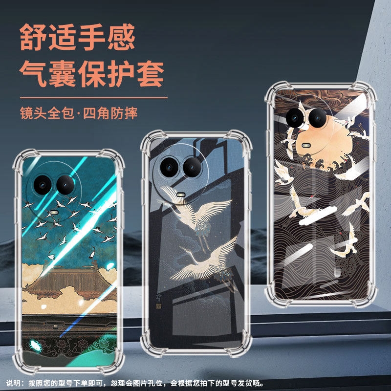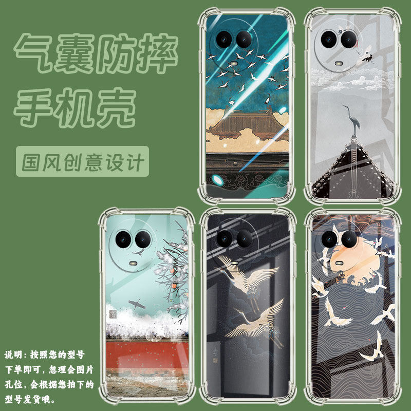 适用Realme真我11手机壳Realme12全包边真我12X飞鹤Realme13气囊壳Realme真我13Pro硅胶中国风保护套