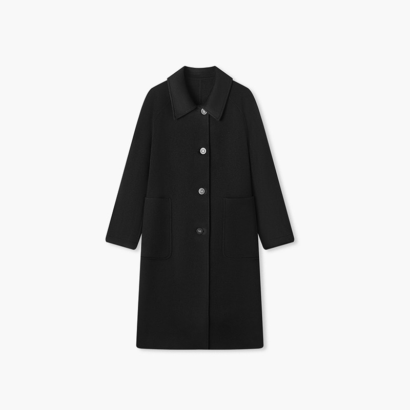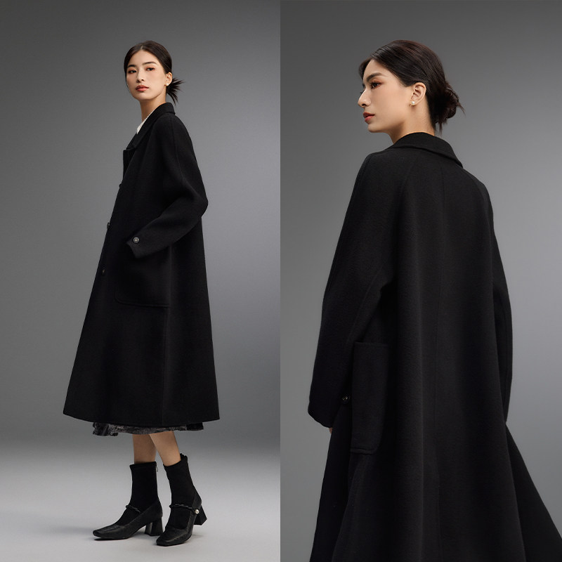 爱居兔经典纯黑色大衣女冬季新款高级感含羊绒双面呢大衣