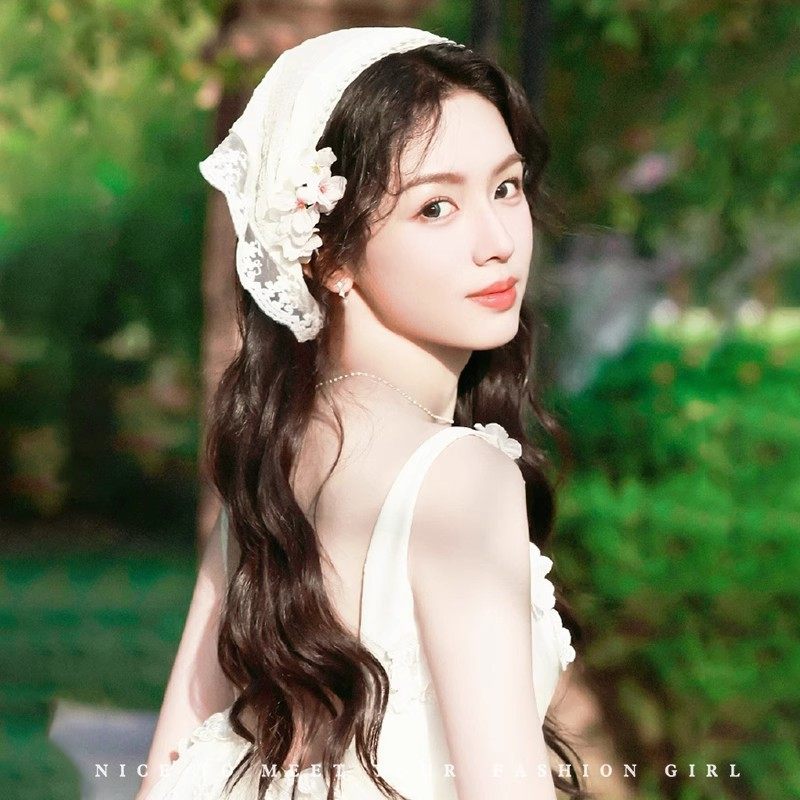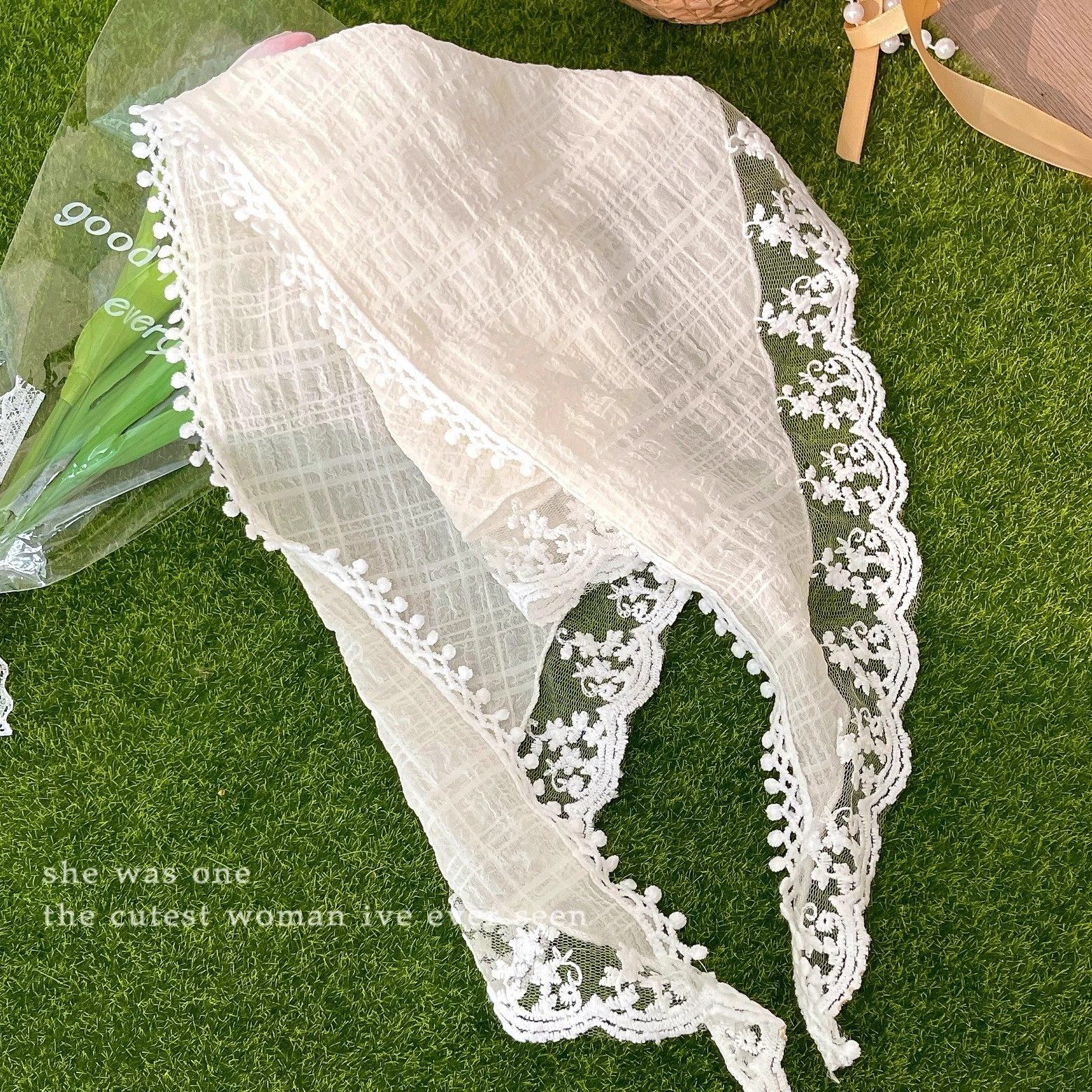 周也同款法式蕾丝发饰白色花边头巾田园风三角巾包头方巾发带