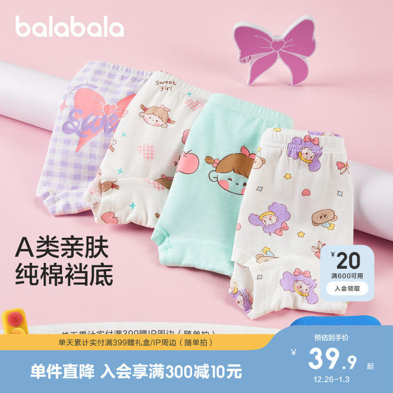 迷你巴拉巴拉儿童内裤男女宝宝抑菌不夹pp四角短裤5条装棉平角裤