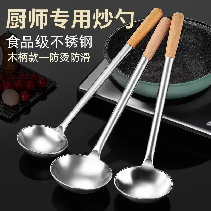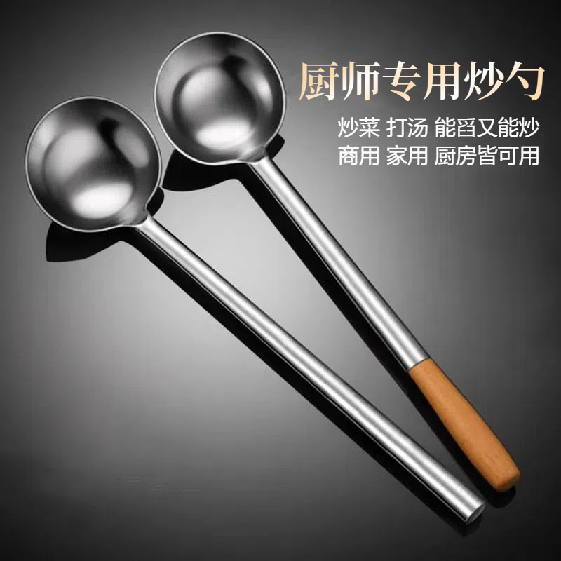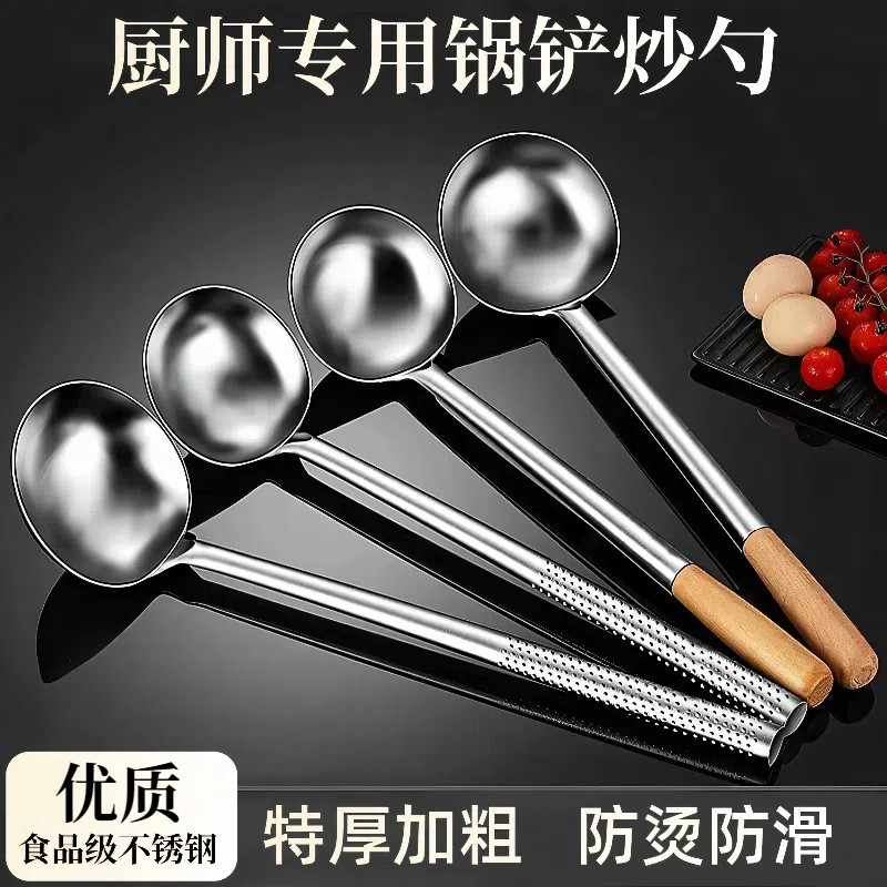 厨师专用炒勺炒铲锅铲汤勺粤菜八两勺10两厨房炒菜勺木柄炒勺炒壳