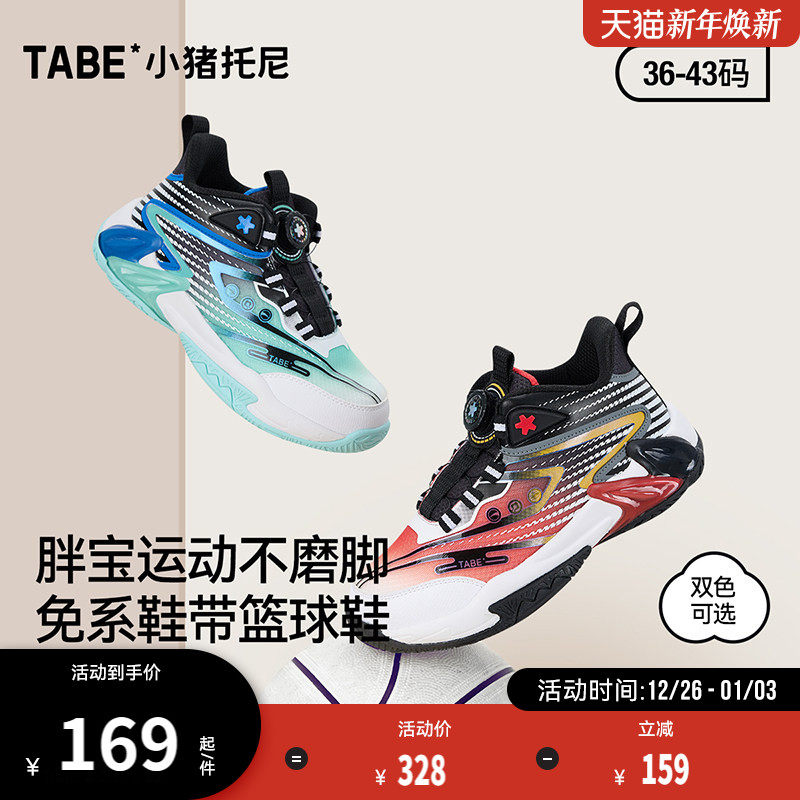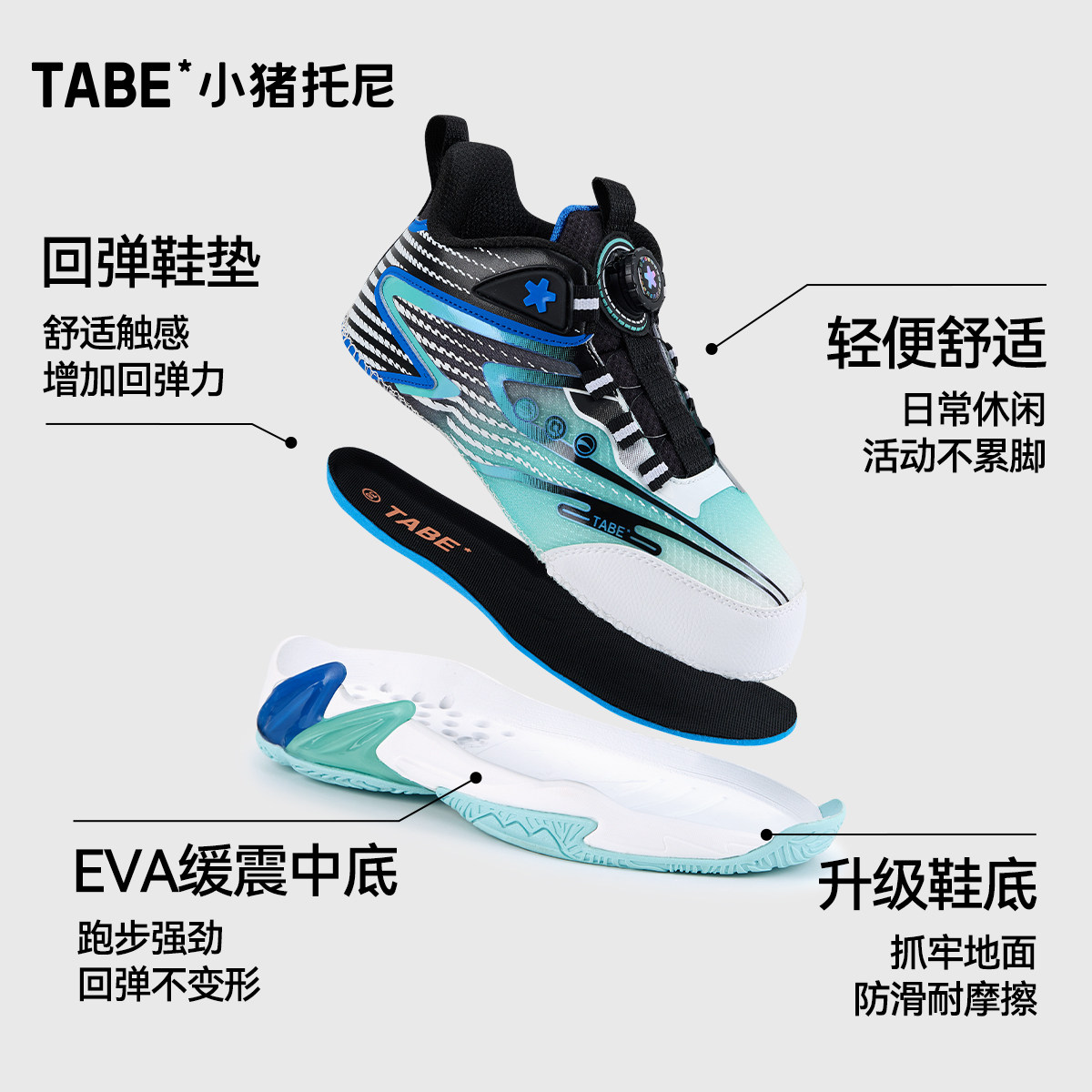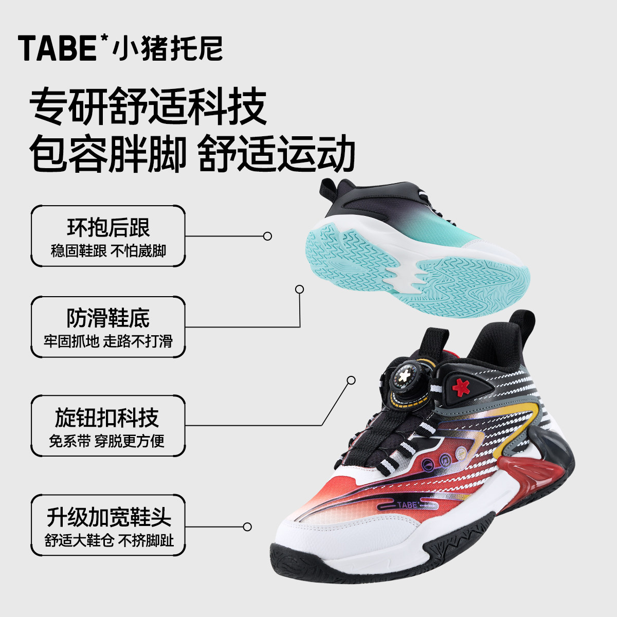 【篮球鞋保护脚踝】小猪托尼胖脚鞋运动鞋子男童旋转扣鞋免系鞋带