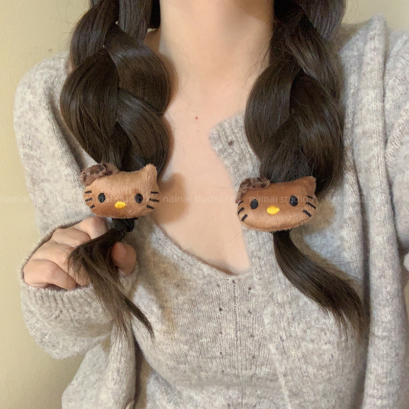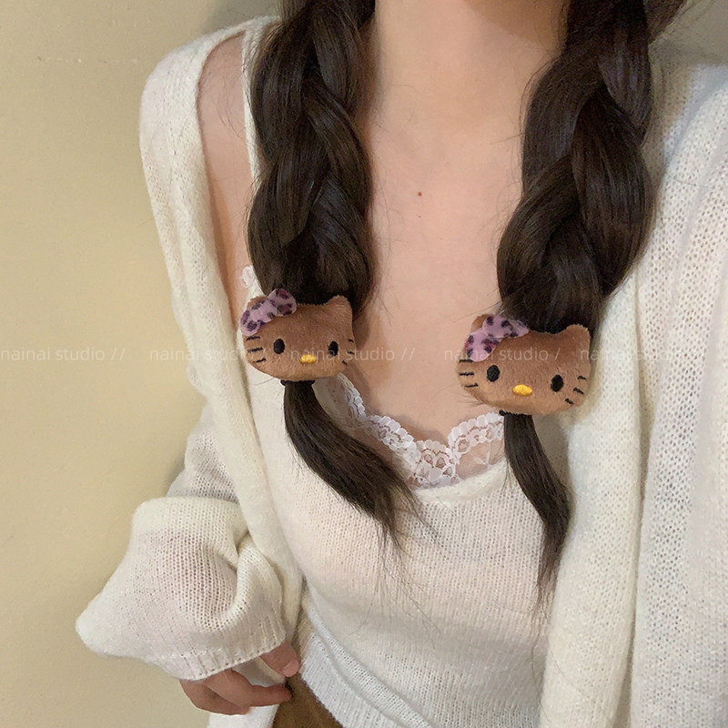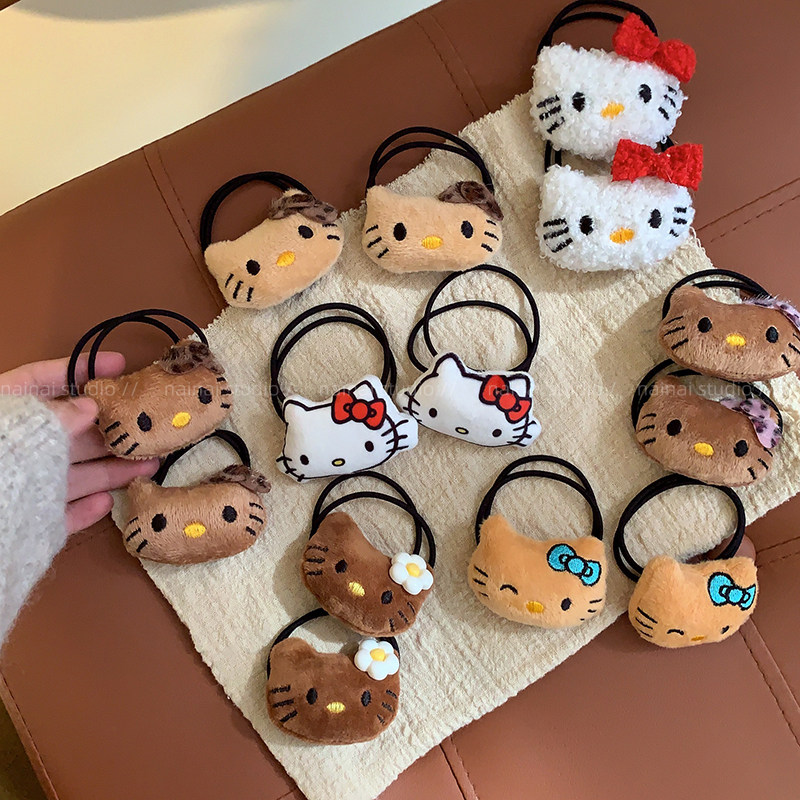 Kitty发圈2只装~少女心卡通甜美毛绒绒秋冬发绳KT猫咪发饰头绳潮