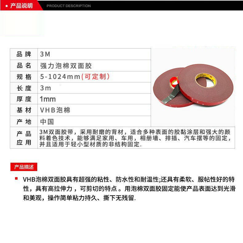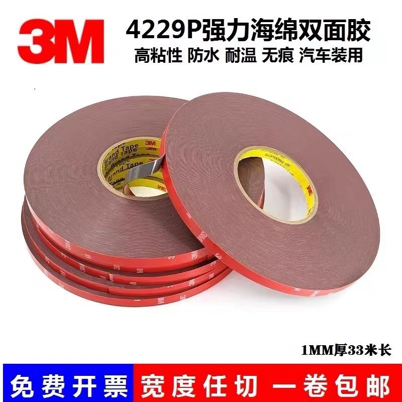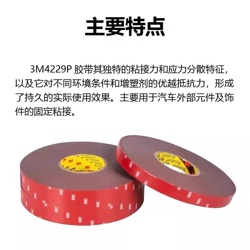 3M4229P强力双面胶 防水耐高温尾翼雨眉固定车用泡棉双面胶1MM厚