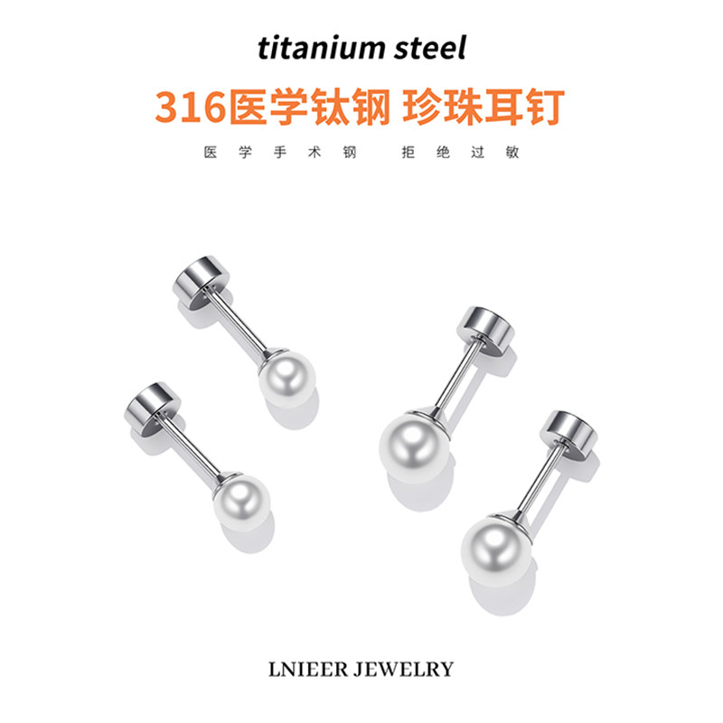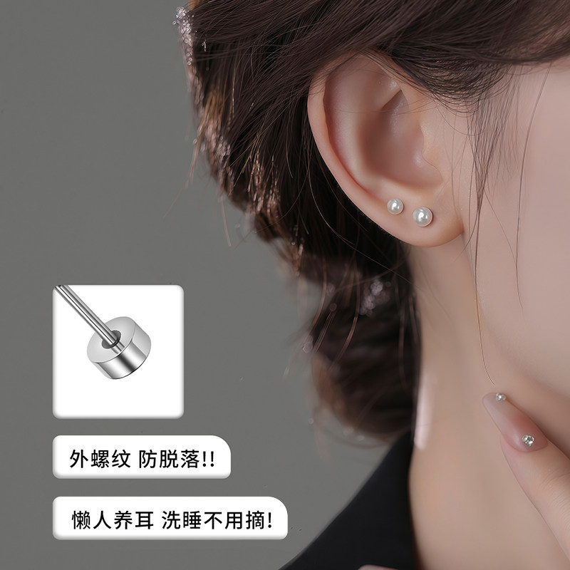 医用钛钢珍珠耳钉女养耳洞耳骨钉螺丝拧扣耳环钛合金耳饰小巧医学