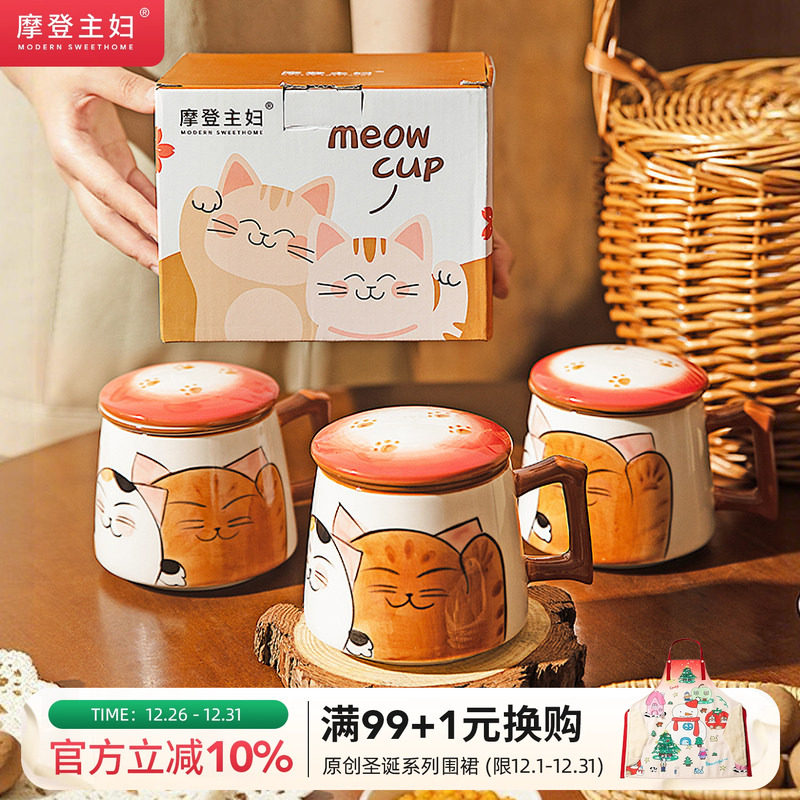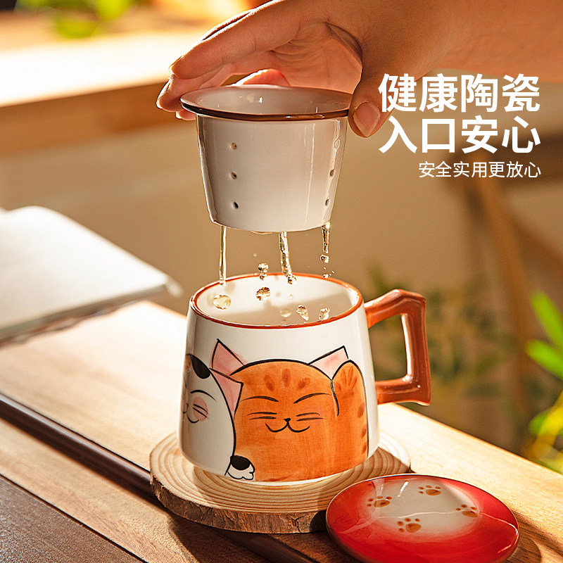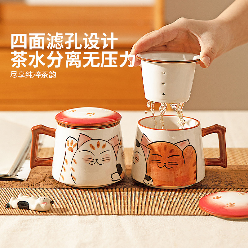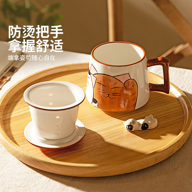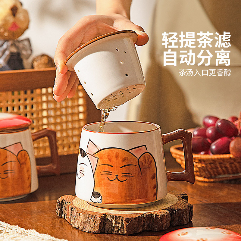 摩登主妇茶水分离杯马克杯带盖女新年马年礼物杯子可爱陶瓷泡茶杯