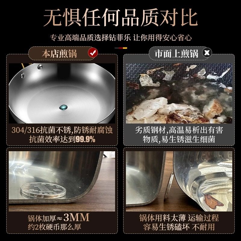 316不锈钢无涂层平底锅家用煎蛋烙饼锅燃气电磁炉不粘锅牛排煎锅