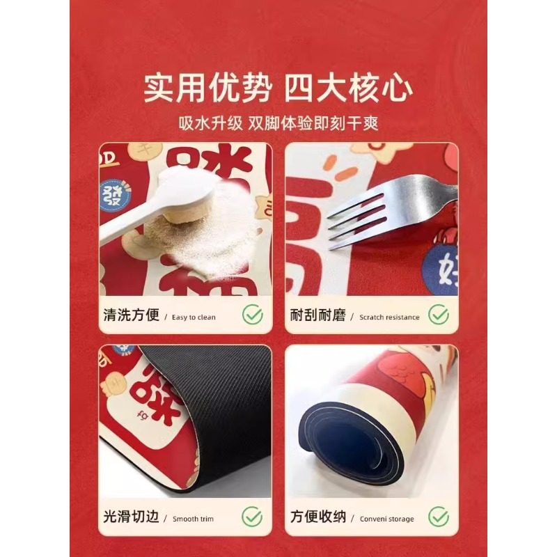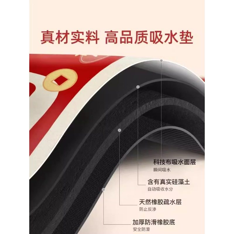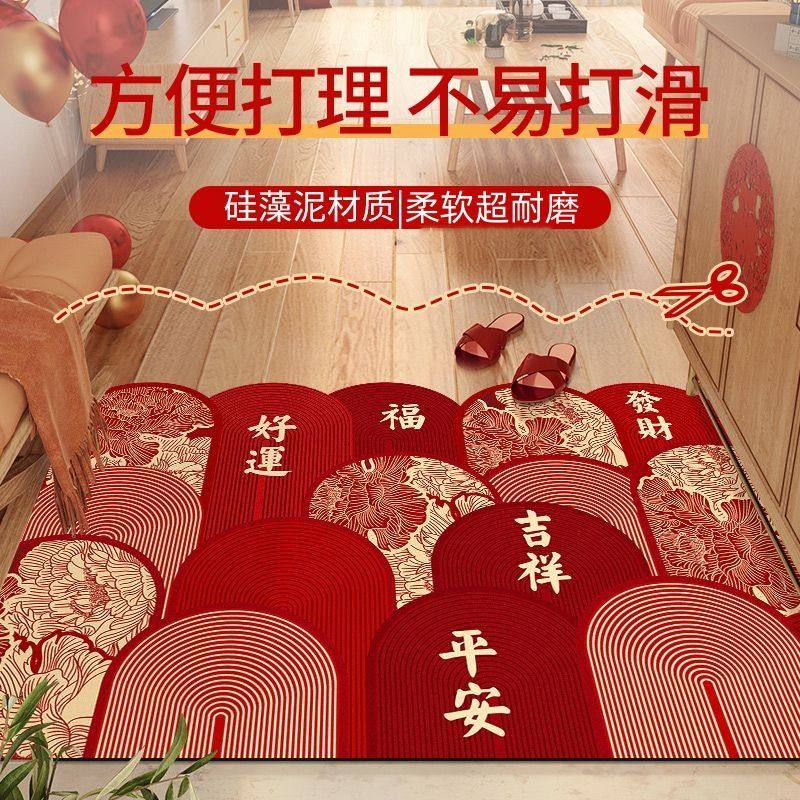 新中式入户门地垫硅藻泥脚垫吸水速干进门门口地毯红色玄关垫子