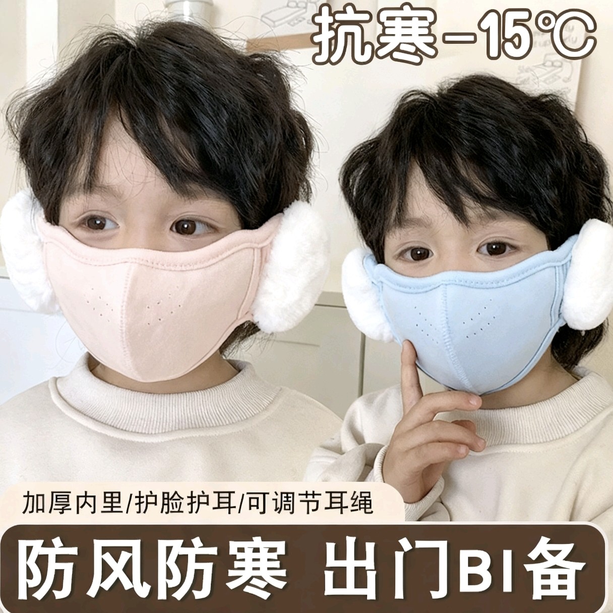 儿童保暖口罩可爱耳罩男女童防寒加绒厚面罩耳包透气防风冬季护耳