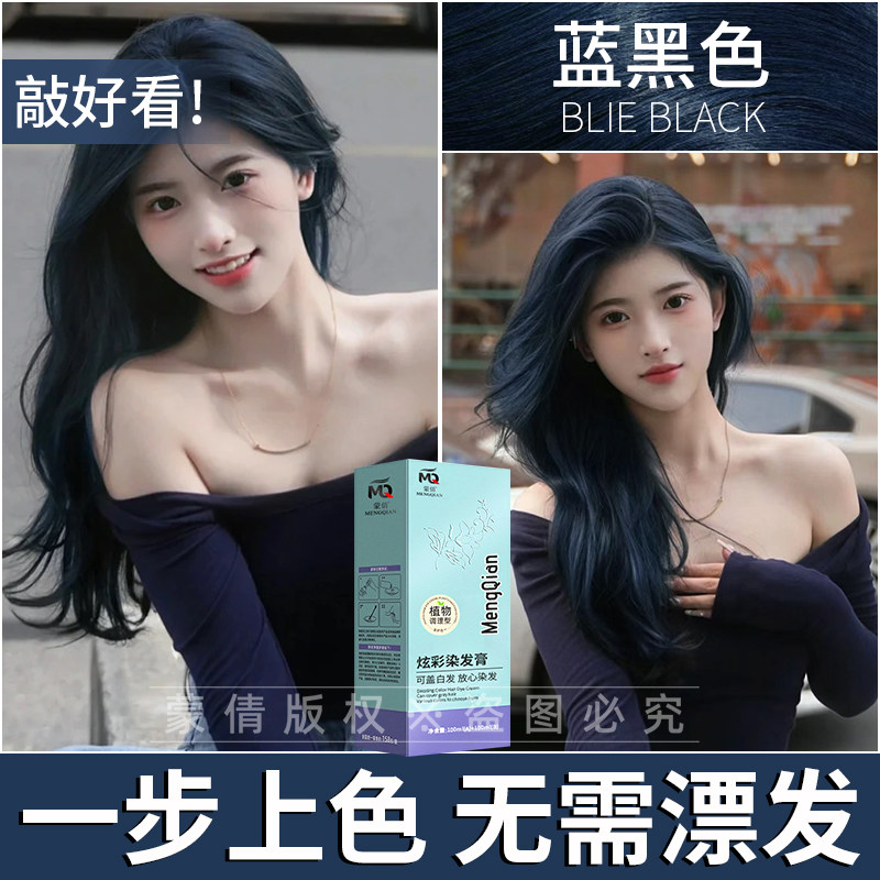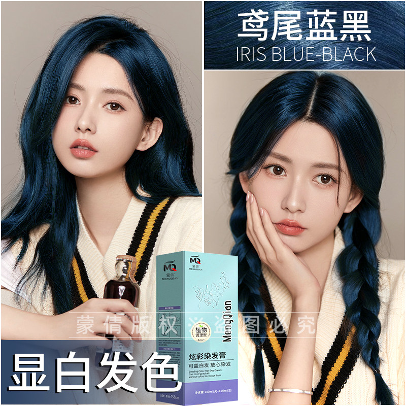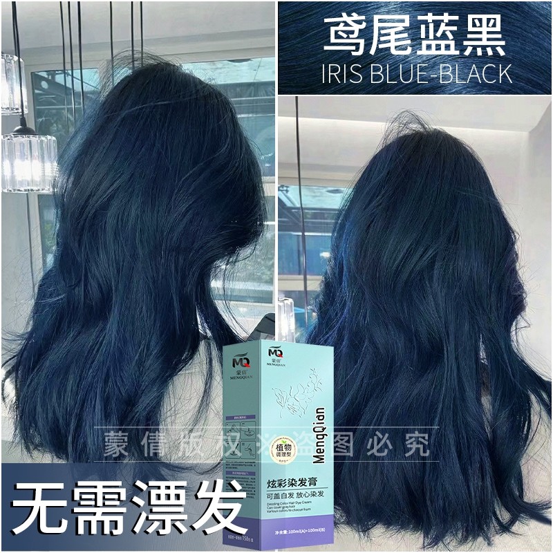 无需漂发褪色鸢尾蓝黑色染发膏2025流行色自己在家染学生染头发剂