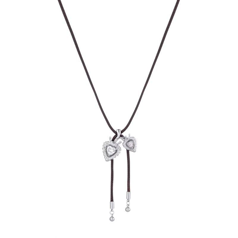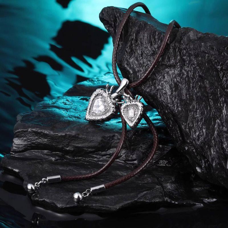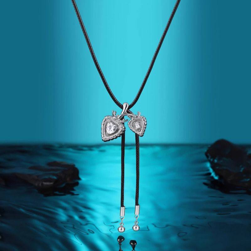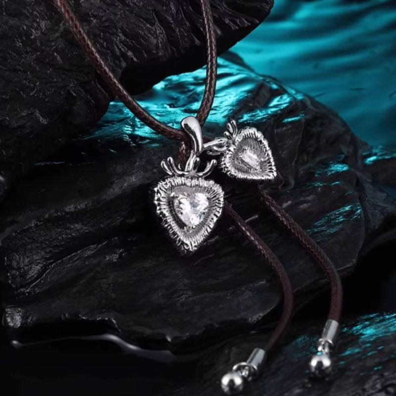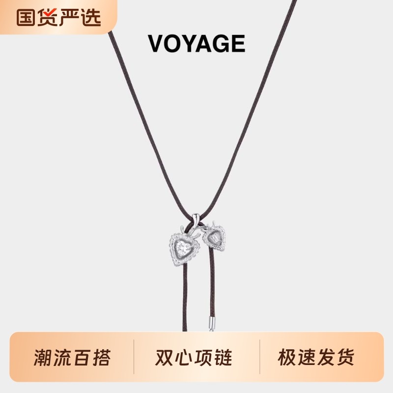 双心吊坠长款项链女抽拉可调节草莓爱心锆石毛衣链高级感秋冬配饰