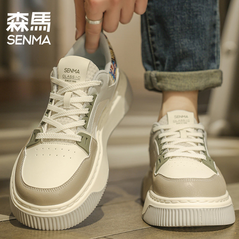 男鞋夏季透气网面运动休闲小众板鞋男士真皮增高百搭小白潮鞋