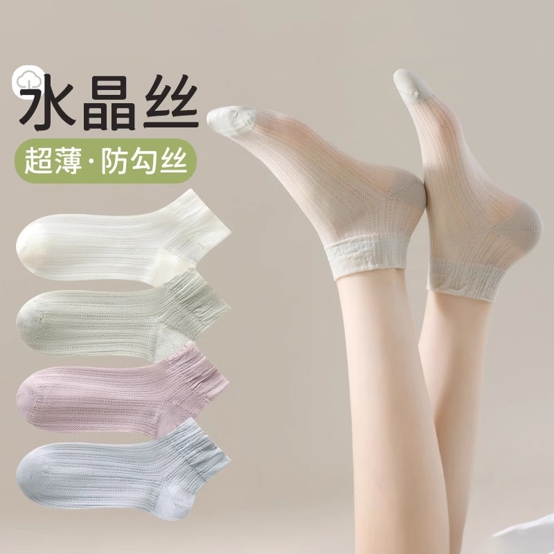 冰丝袜子女短袜夏季薄款水晶丝无骨袜防勾丝不臭脚吸汗透气网眼袜