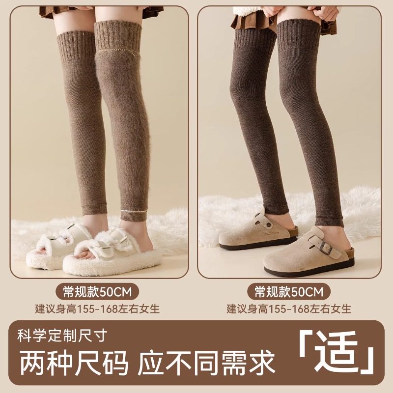 暖冬拍档~羊绒袜套保暖过膝长筒袜针织堆堆袜护小腿脚腕护膝纯色