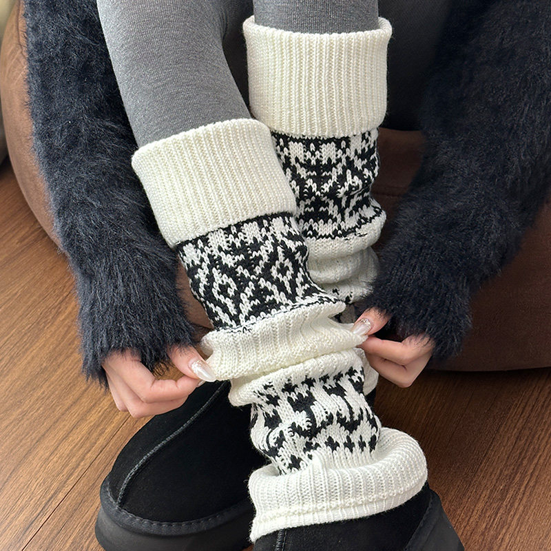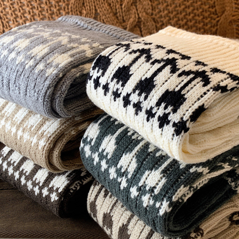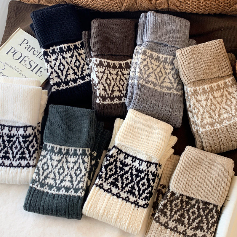 费尔岛堆堆袜子女秋冬袜套针织腿套加厚保暖中筒袜灰色雪地靴长袜