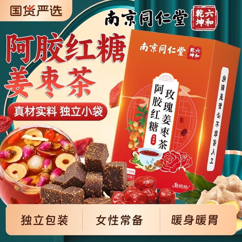南京同仁堂阿胶玫瑰红糖姜枣茶单独小包装女生魅格格bz姜茶黑糖