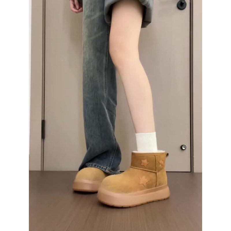 增高6cm~星星雪地靴女款冬季加绒大头面包鞋保暖短靴厚底雪地棉鞋