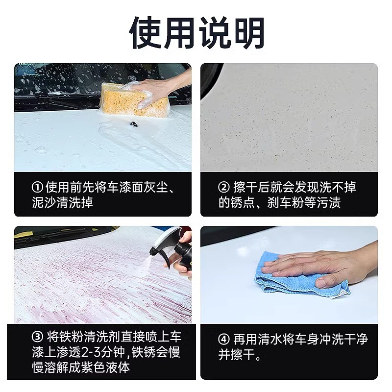 车仆铁粉去除剂汽车车身漆面除铁锈去污清洗剂不伤漆轮毂去黄点