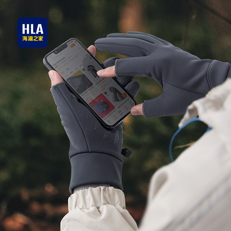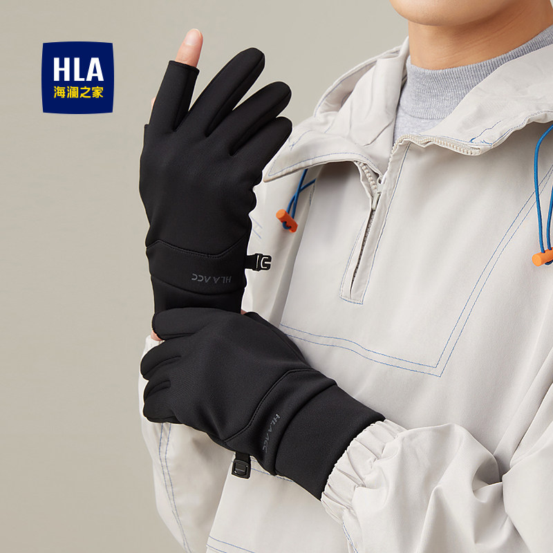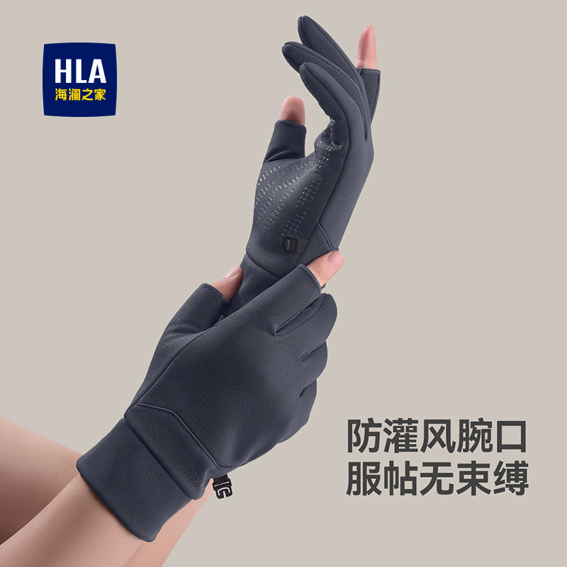 海澜之家手套男士漏两指秋冬御寒保暖学生写字骑行电动车半指女款