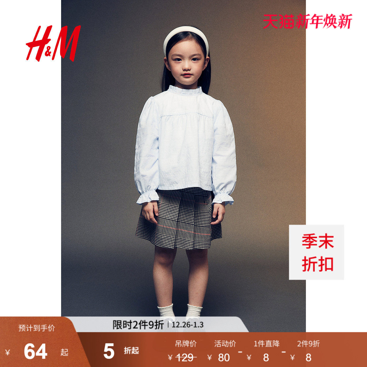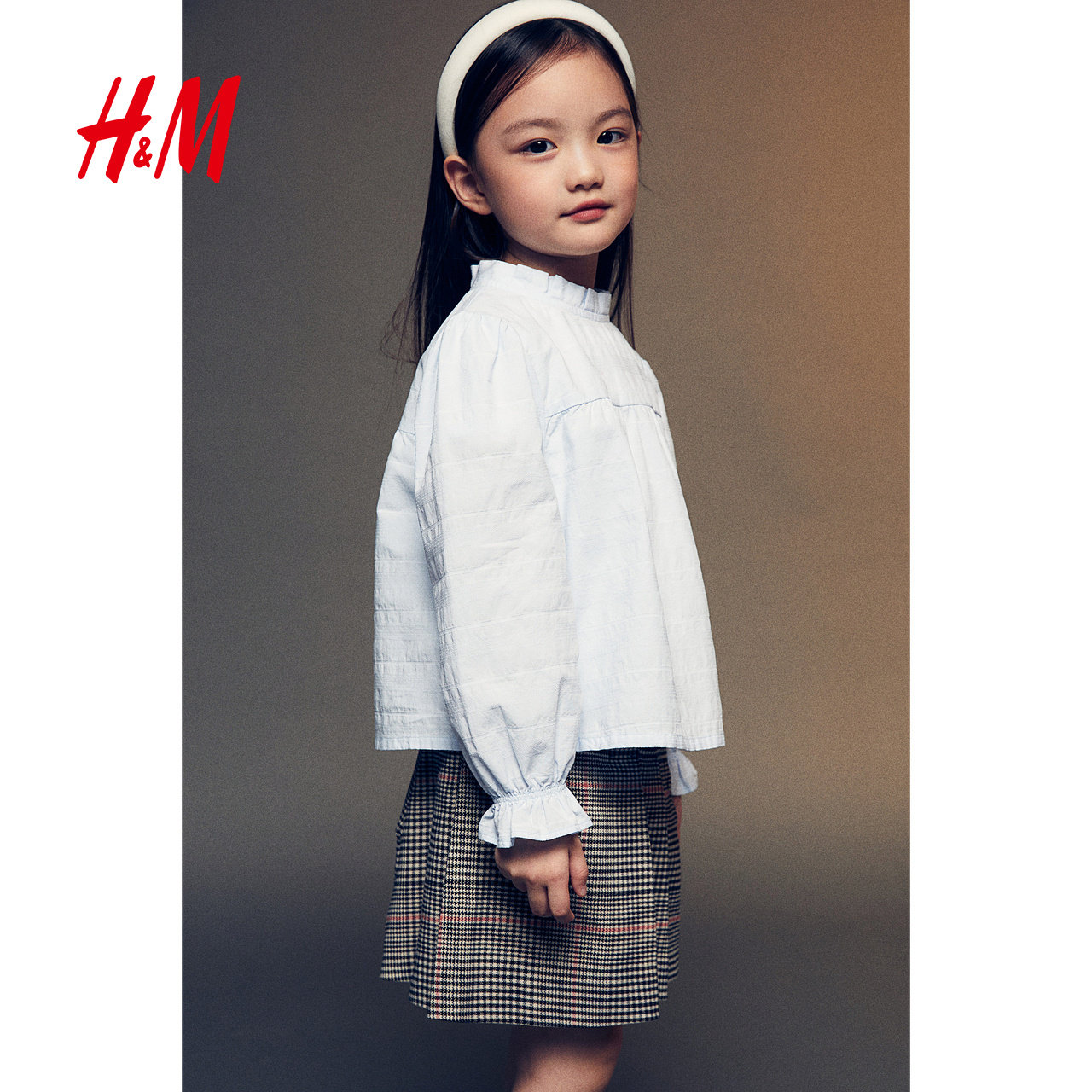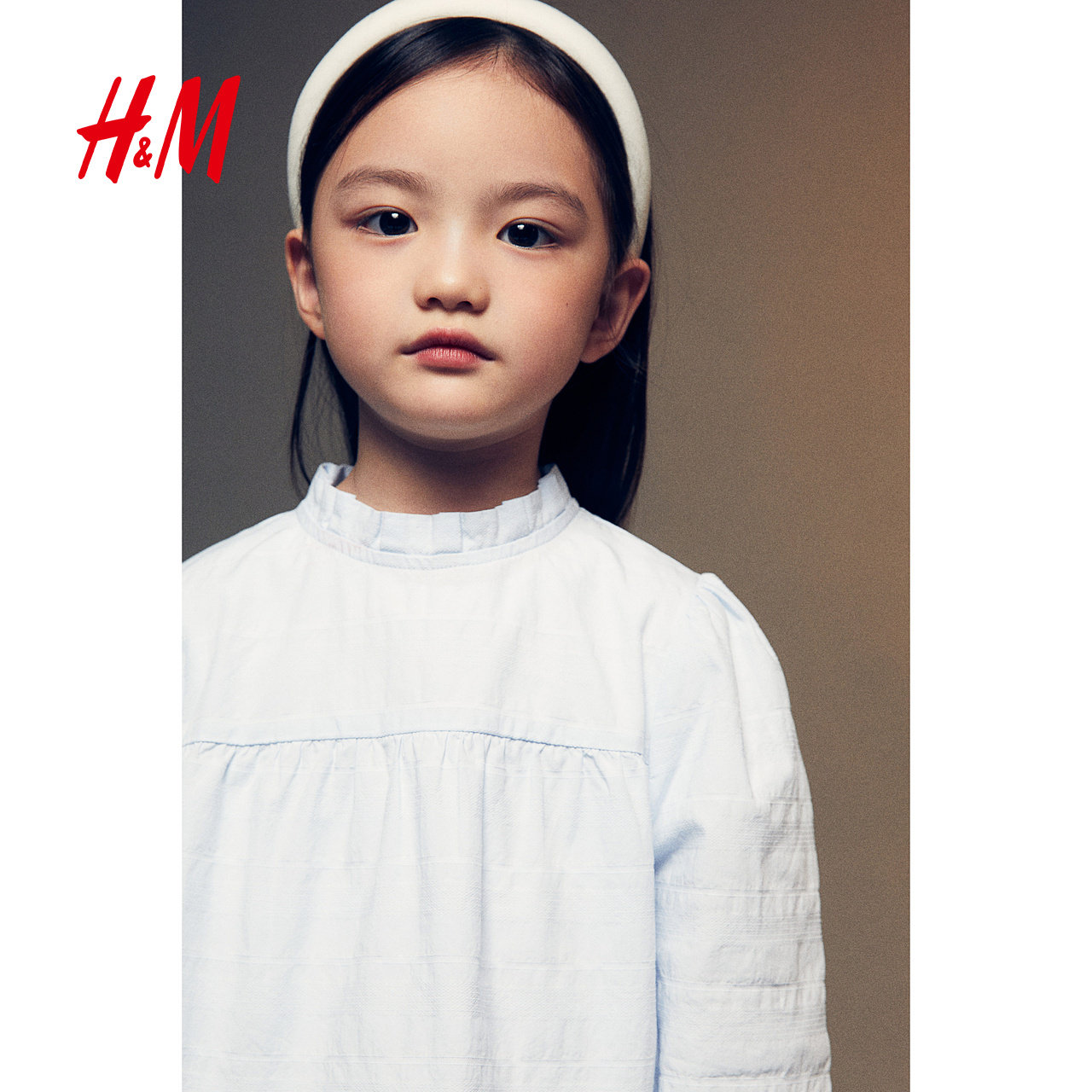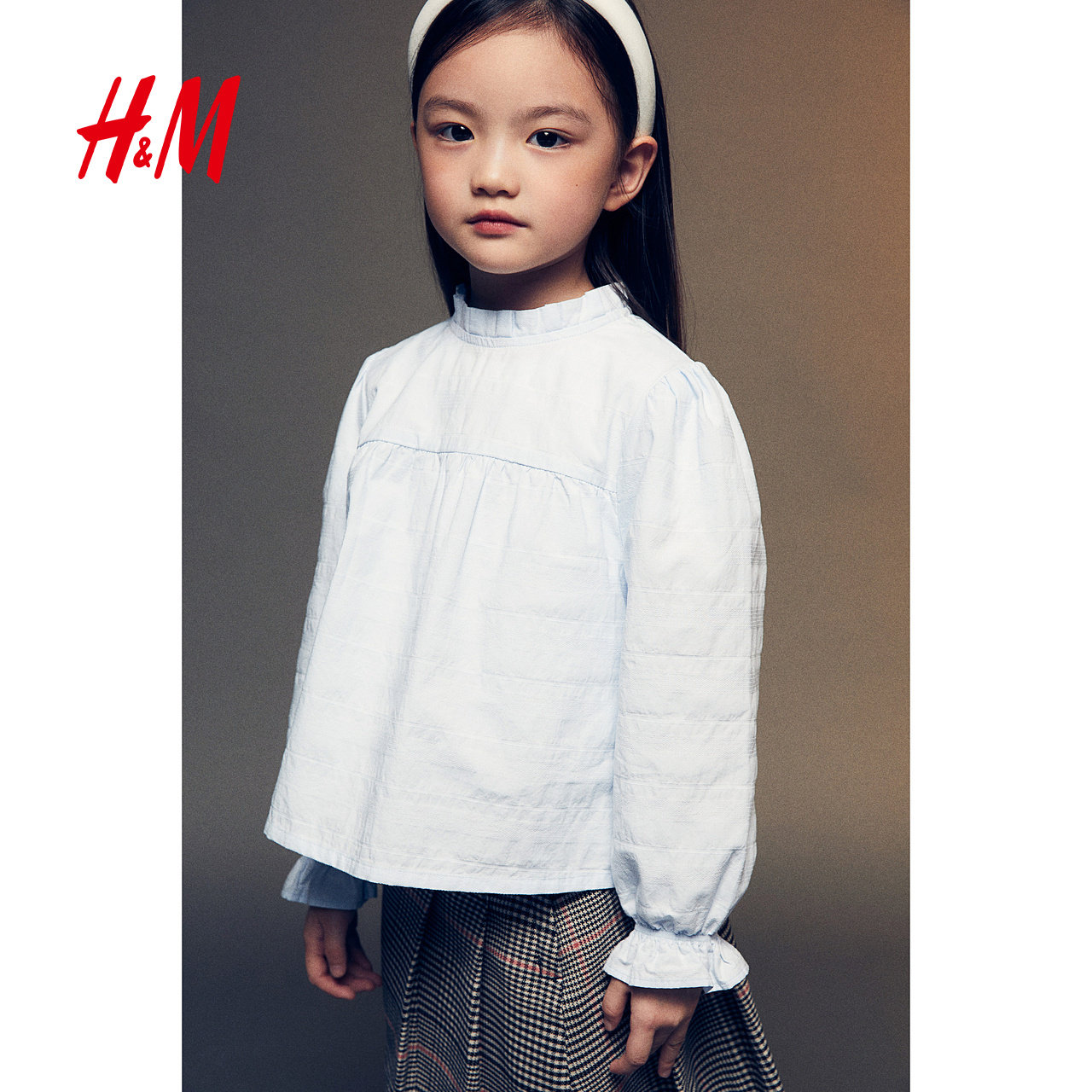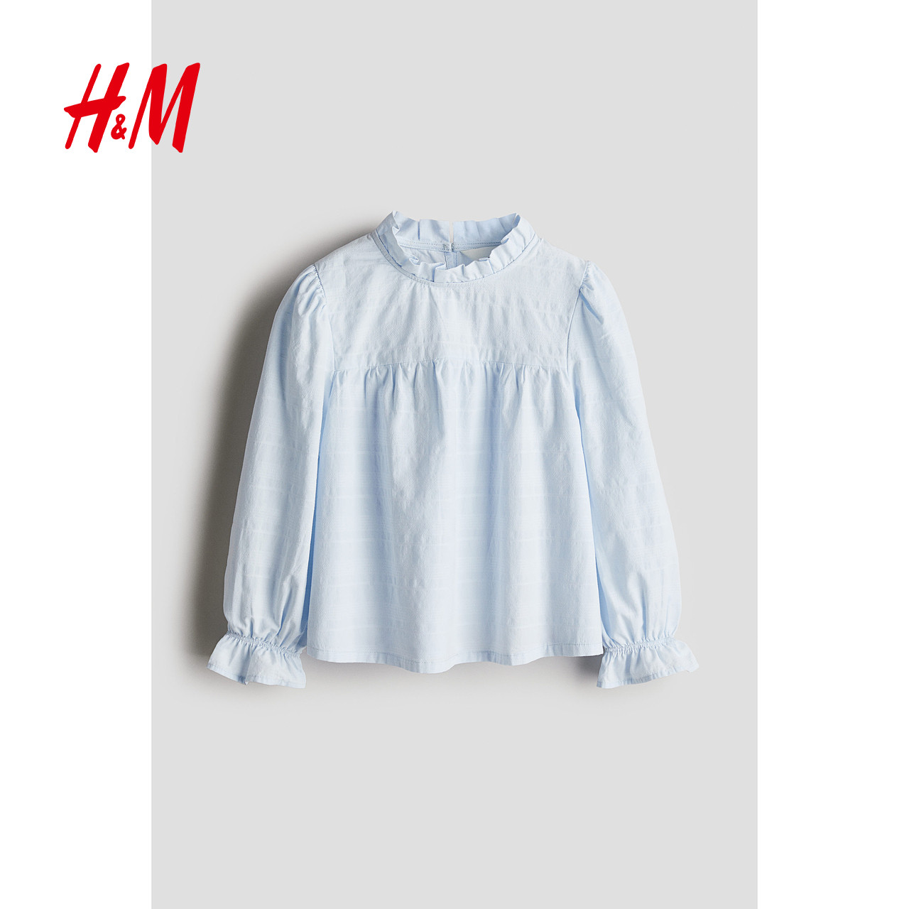 HM童装儿童女童衬衫冬时尚宽松提花梭织圆领泡泡长袖上衣1257013