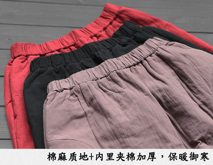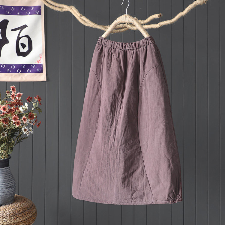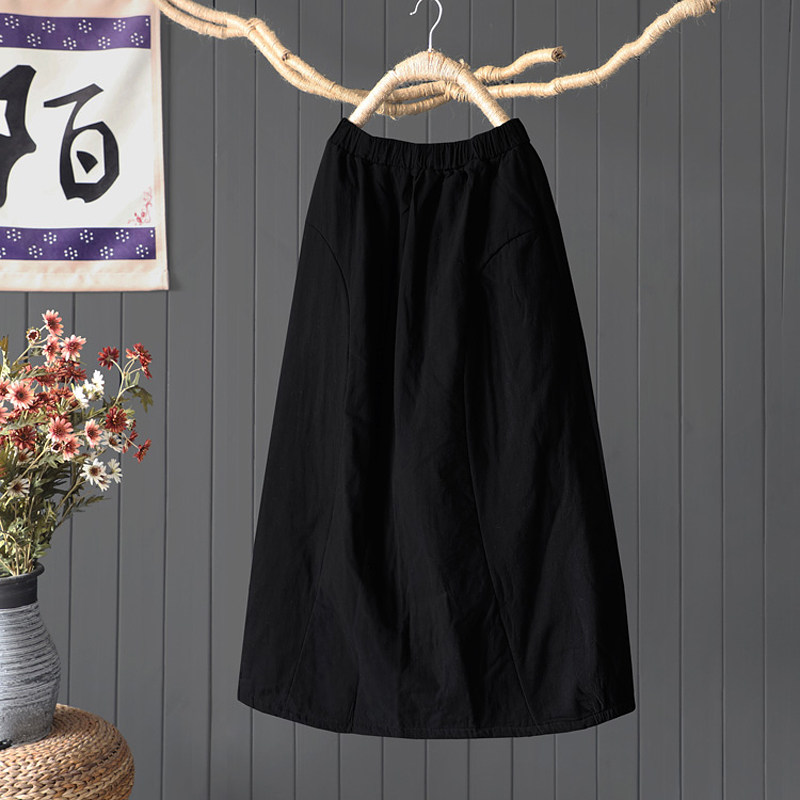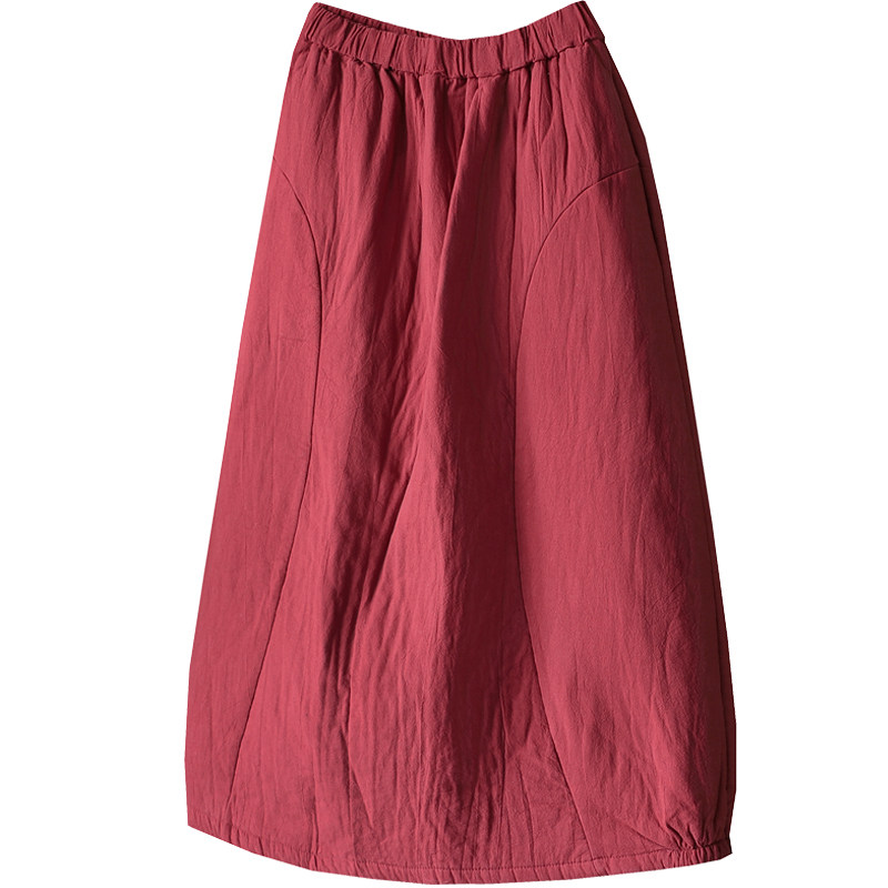 陌上轩 复古文艺纯色棉麻半身裙女冬宽松小A字夹棉加厚棉裙九分裙