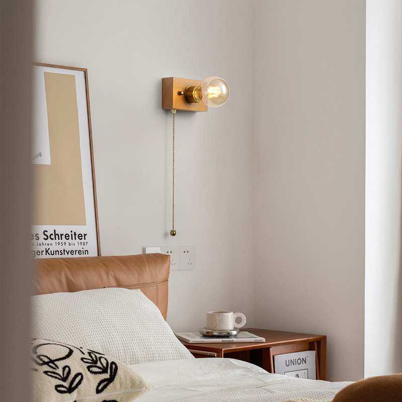 壁灯黑胡桃木软管灯卧室阅读灯自带开关调节极简装饰床头复古风