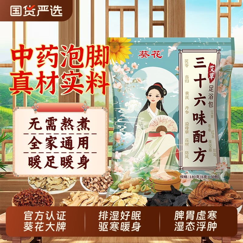 葵花36味泡脚药包祛寒排湿干姜艾草藏红花去湿气排毒助睡眠足浴包