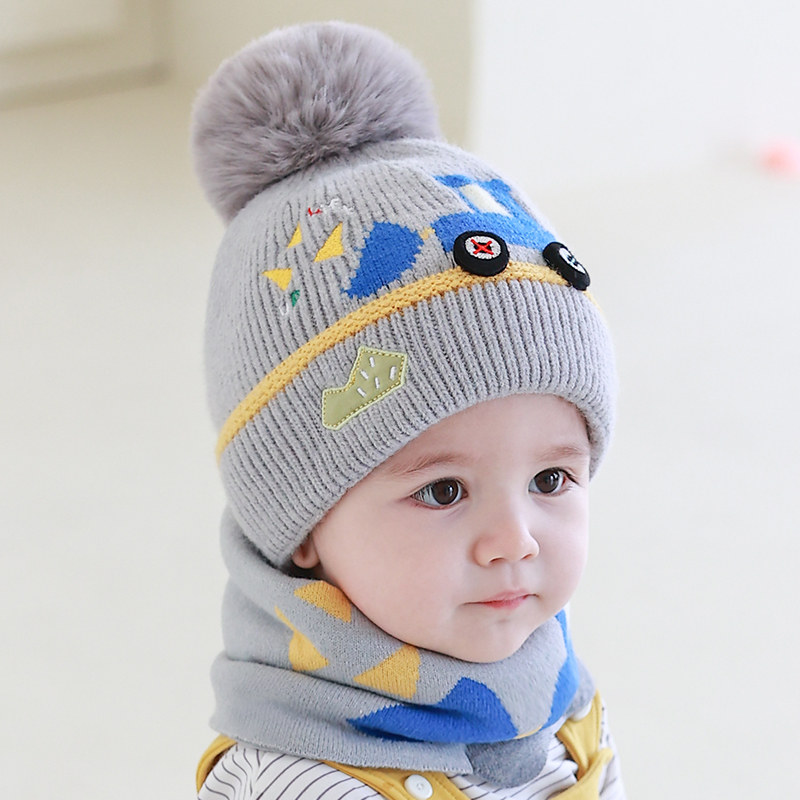 男宝宝帽子秋冬儿童加厚针织护耳帽婴儿冬季保暖毛线防风防寒冬帽
