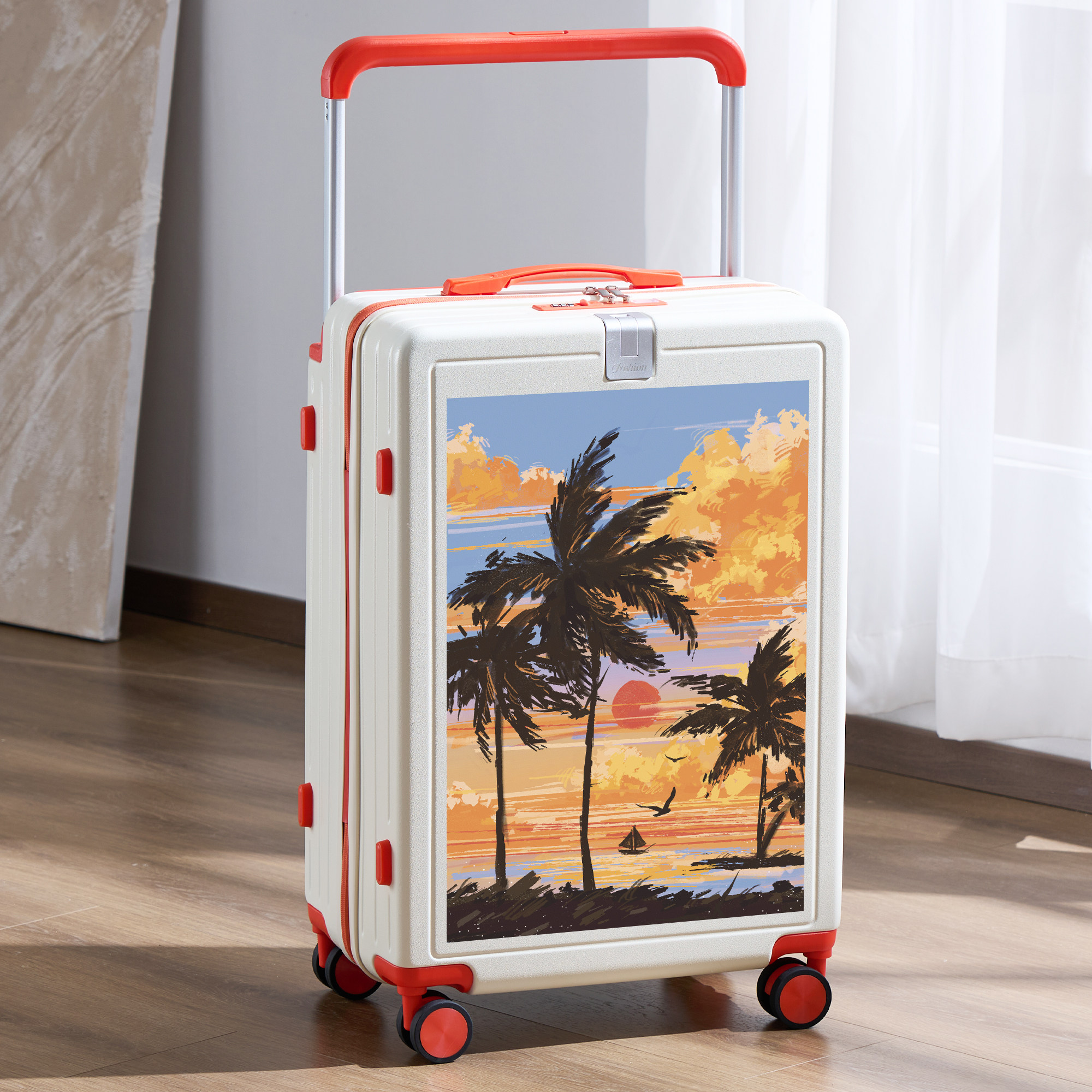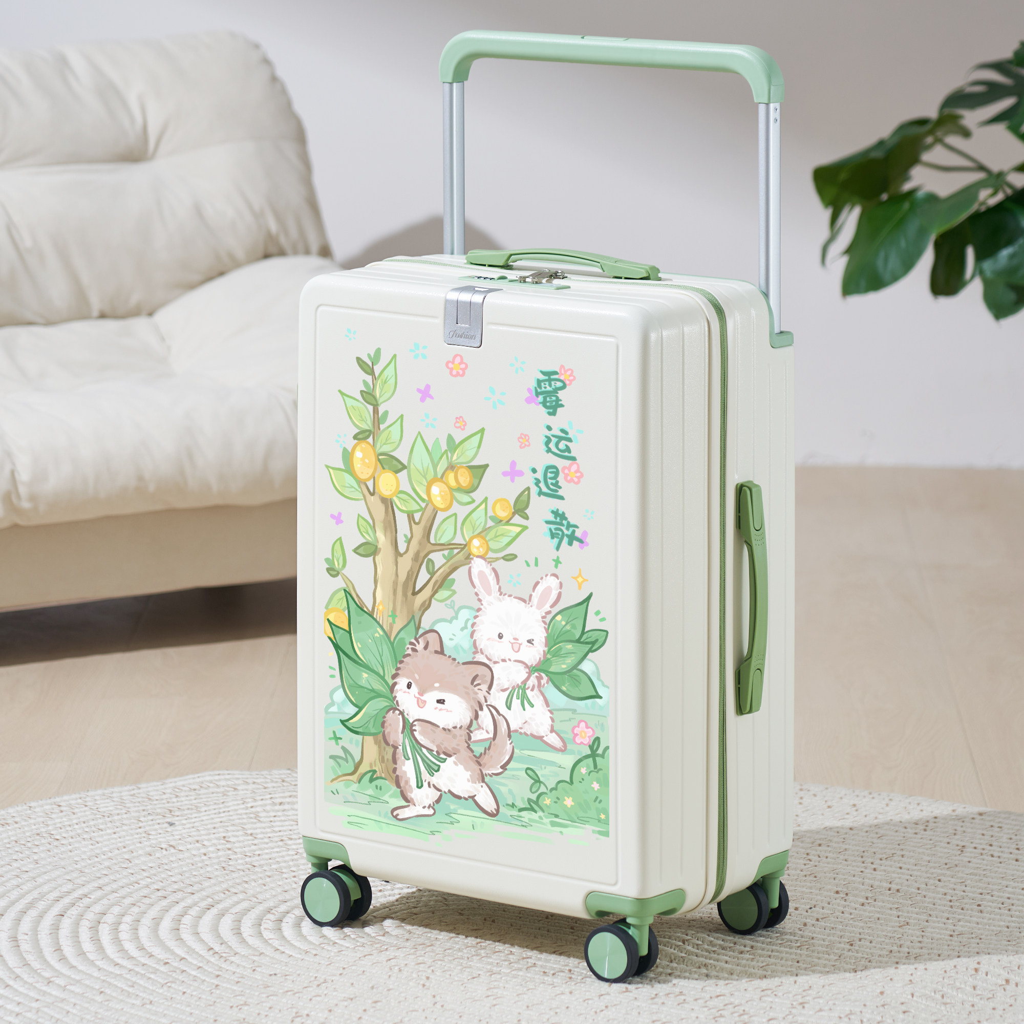 奥蒂雅插画宽拉杆行李箱20寸女卡通高颜值旅行密码箱26寸男大容量