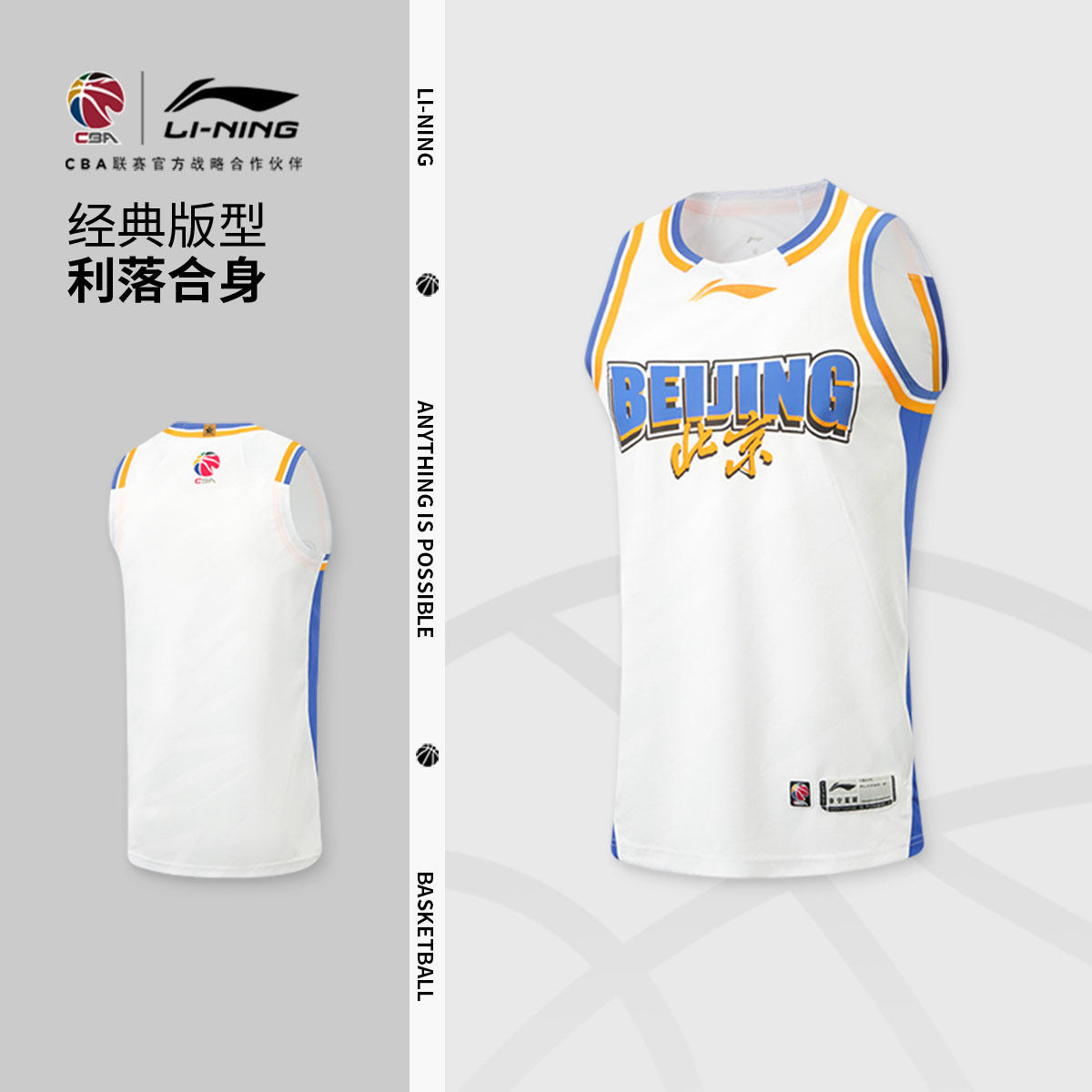 李宁25-26赛季CBA北京首钢球迷版篮球比赛服男士官方新款运动服男