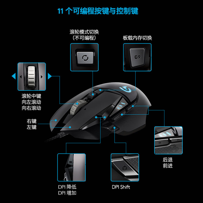 罗技G502HERO有线鼠标电竞机械游戏吃鸡cs打瓦专用笔记本电脑编程