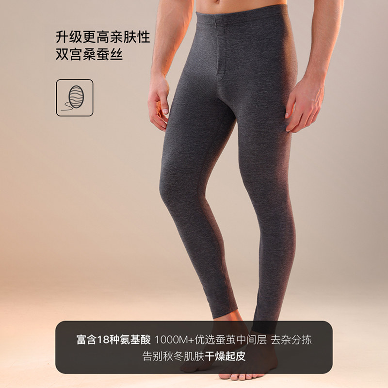 羊毛蚕丝男士秋裤发热加厚加绒德保暖裤无痕薄款衬裤打底线裤冬季