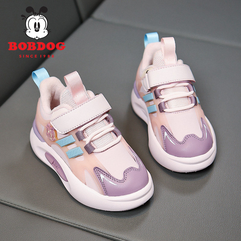 巴布豆女童运动鞋加绒保暖2025冬季新款男孩二棉鞋保暖抗寒儿童鞋