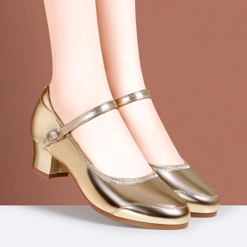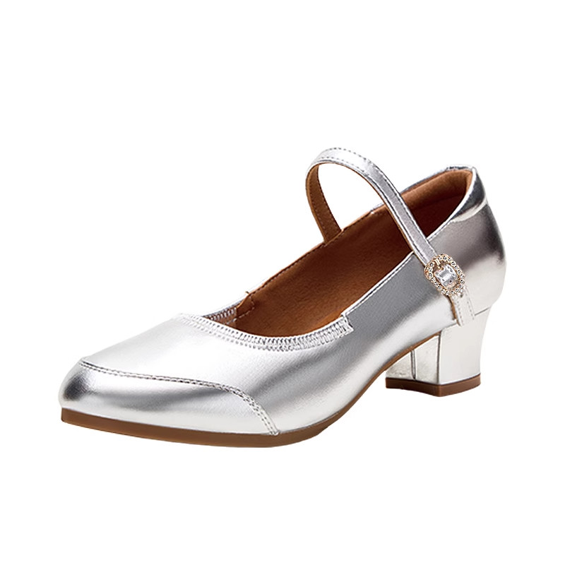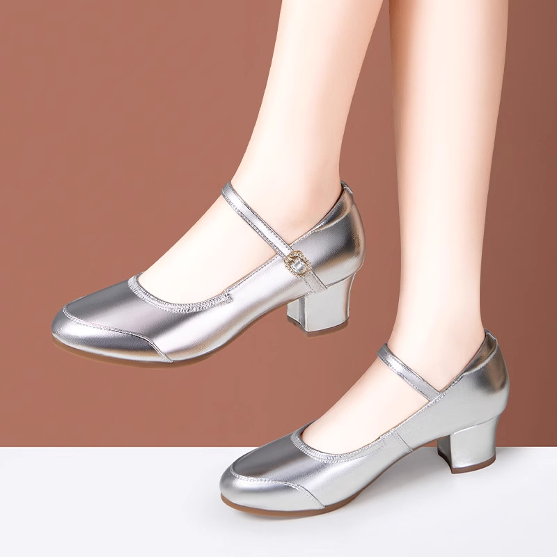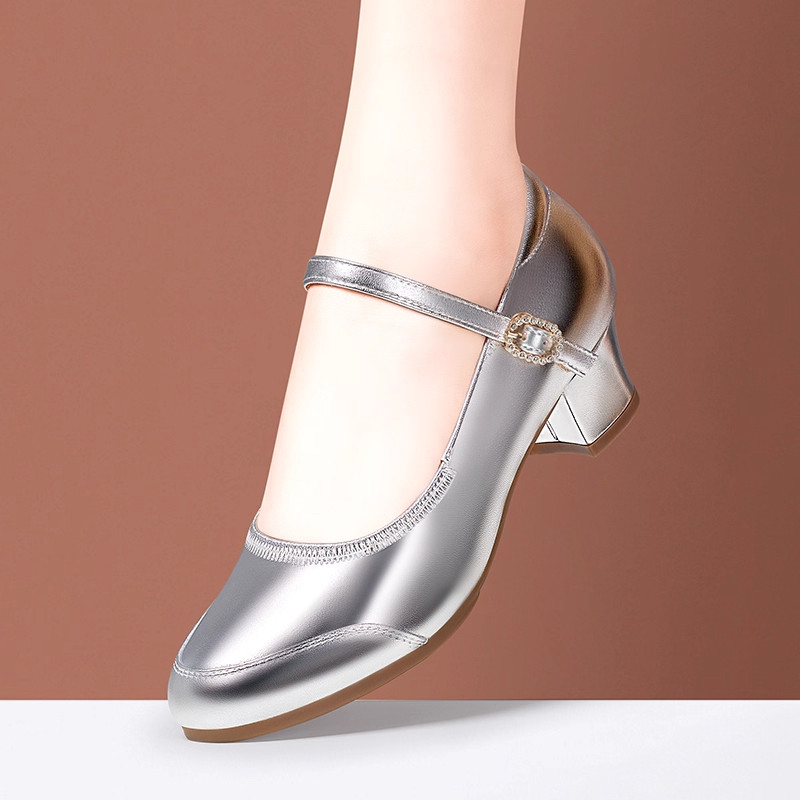 银色舞蹈鞋女广场舞鞋女软底软皮四季演出跳舞鞋中跟透气中老年
