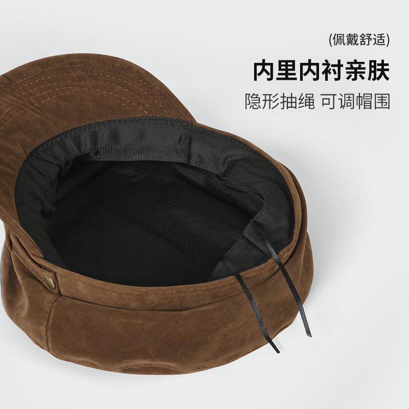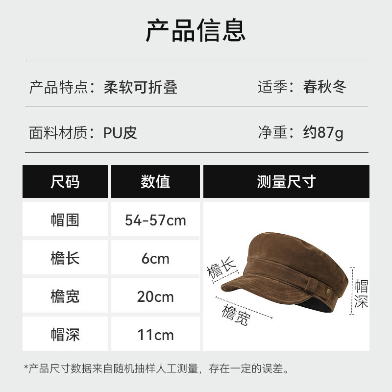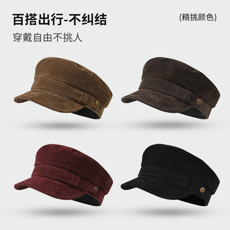 英伦复古海军风韩系八角帽帽子女麂皮绒报童贝雷帽秋季平顶显脸小