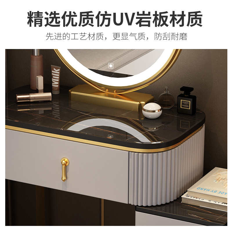 轻奢岩板梳妆台床头收纳柜一体卧室现代简约化妆桌小户型网红ins