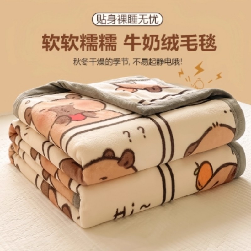 卡皮巴拉网红毛毯冬季加厚小毯子办公室午睡毯珊瑚牛奶绒毯