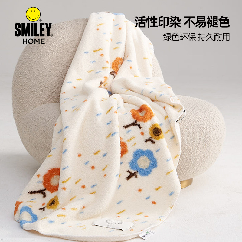 SMILEY盖毯黎贝卡合作款双面绒沙发毯子毛毯轻奢高级感北欧风绒毯