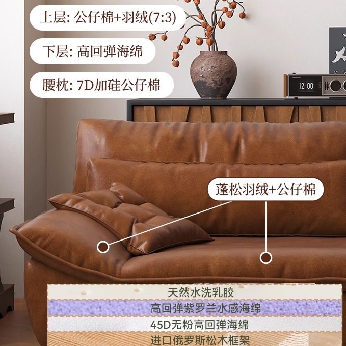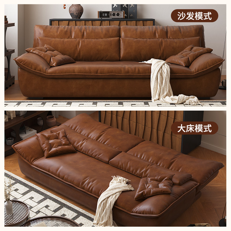 木宫匠家具帆船沙发床复古油蜡皮多功能可折叠两用小户型客厅沙发