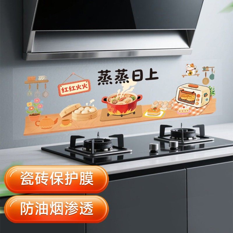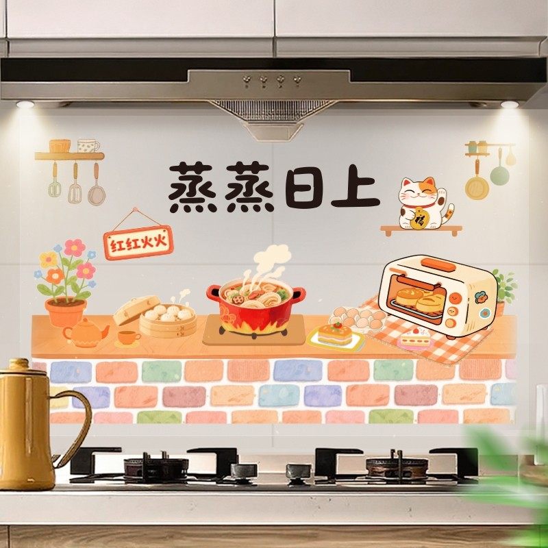 厨房防油贴纸蒸蒸日上灶台防水静电墙贴防火耐高温新居墙面装饰