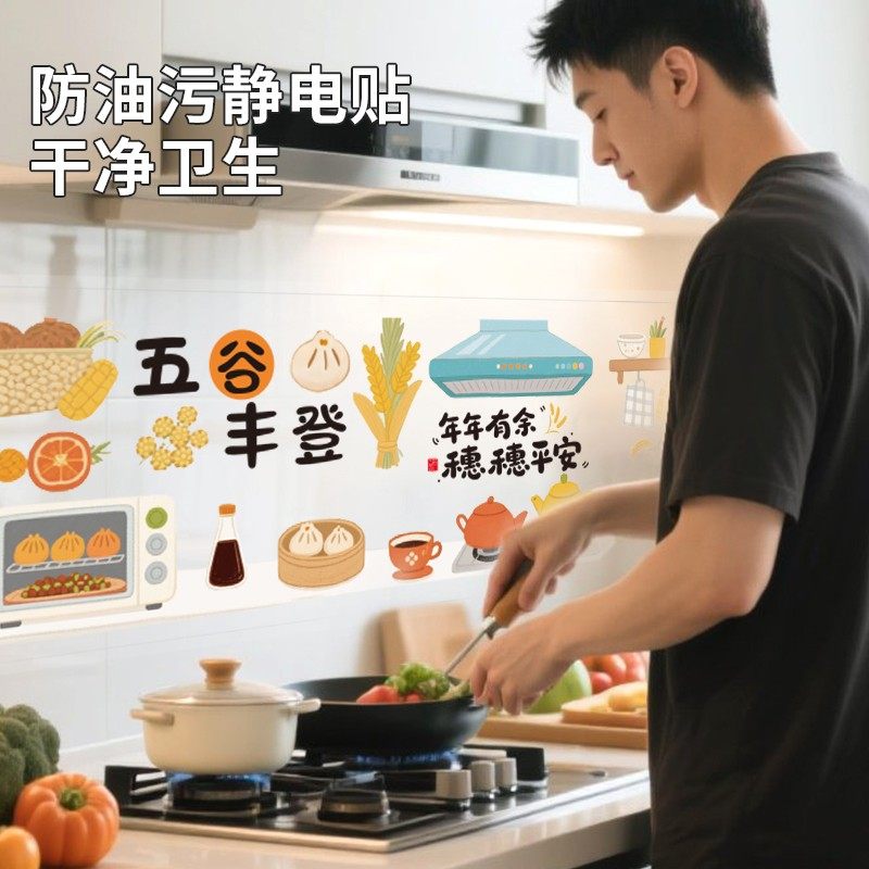厨房防油贴纸乔迁之喜入宅礼物全套蒸蒸日上2026马年新年装饰布置