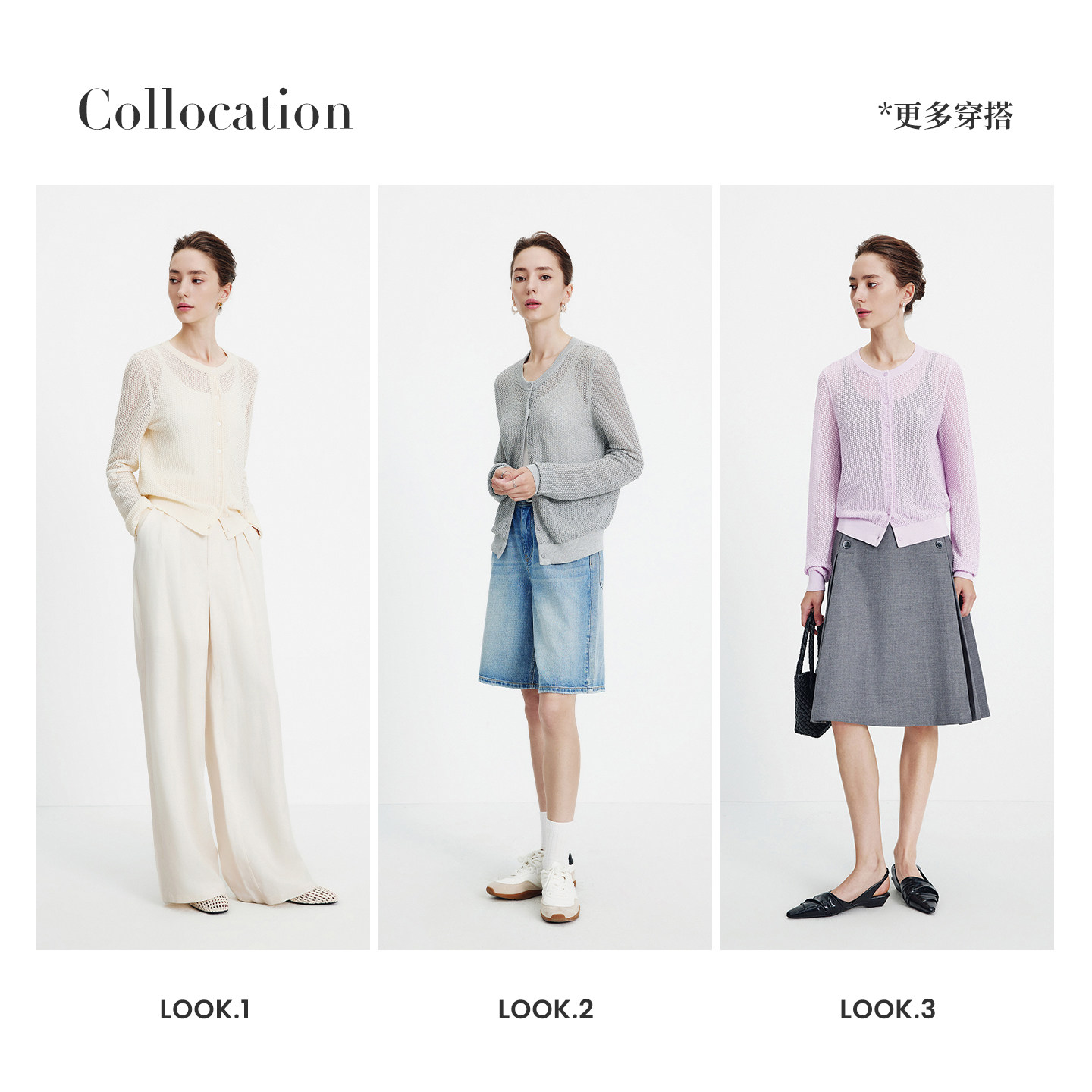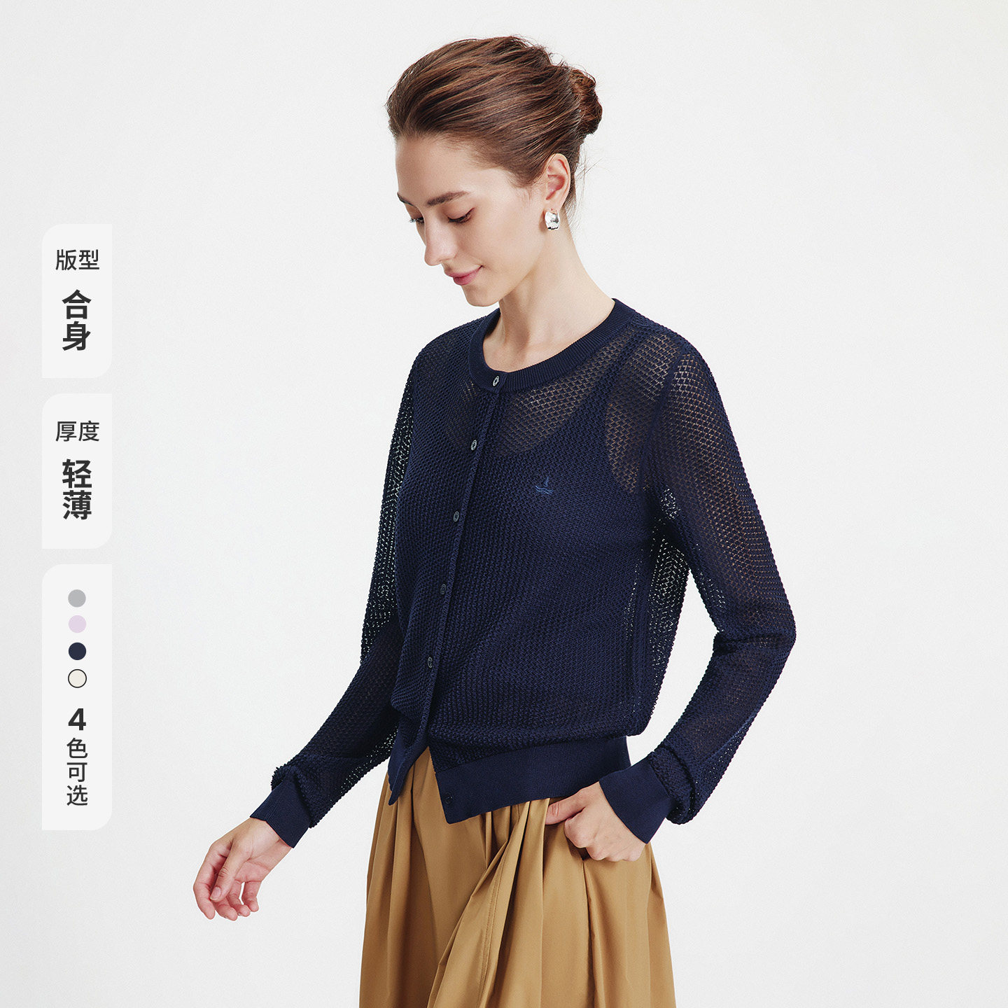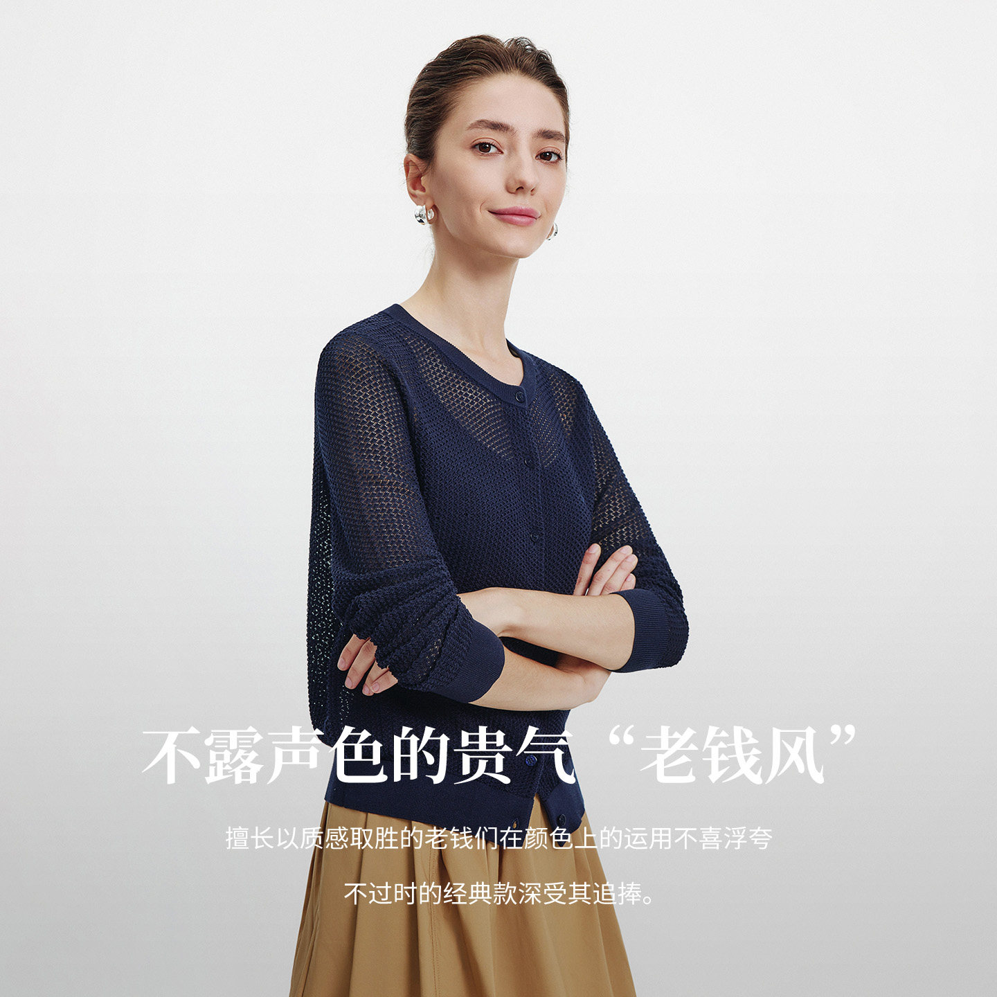 Navigare意大利小帆船老钱风针织开衫女薄款2026春季圆领镂空毛衣
